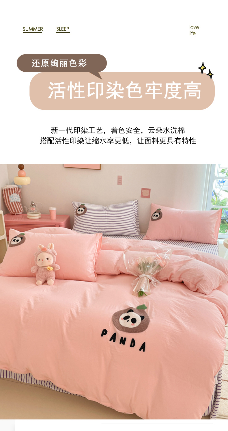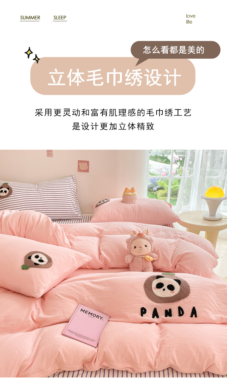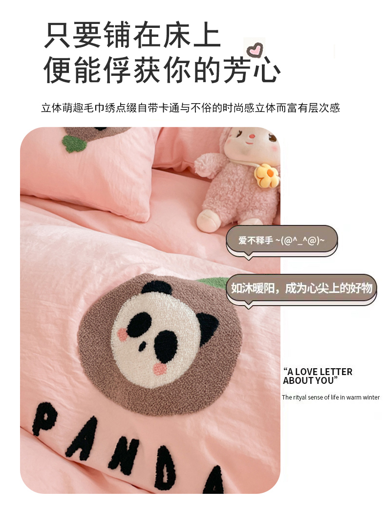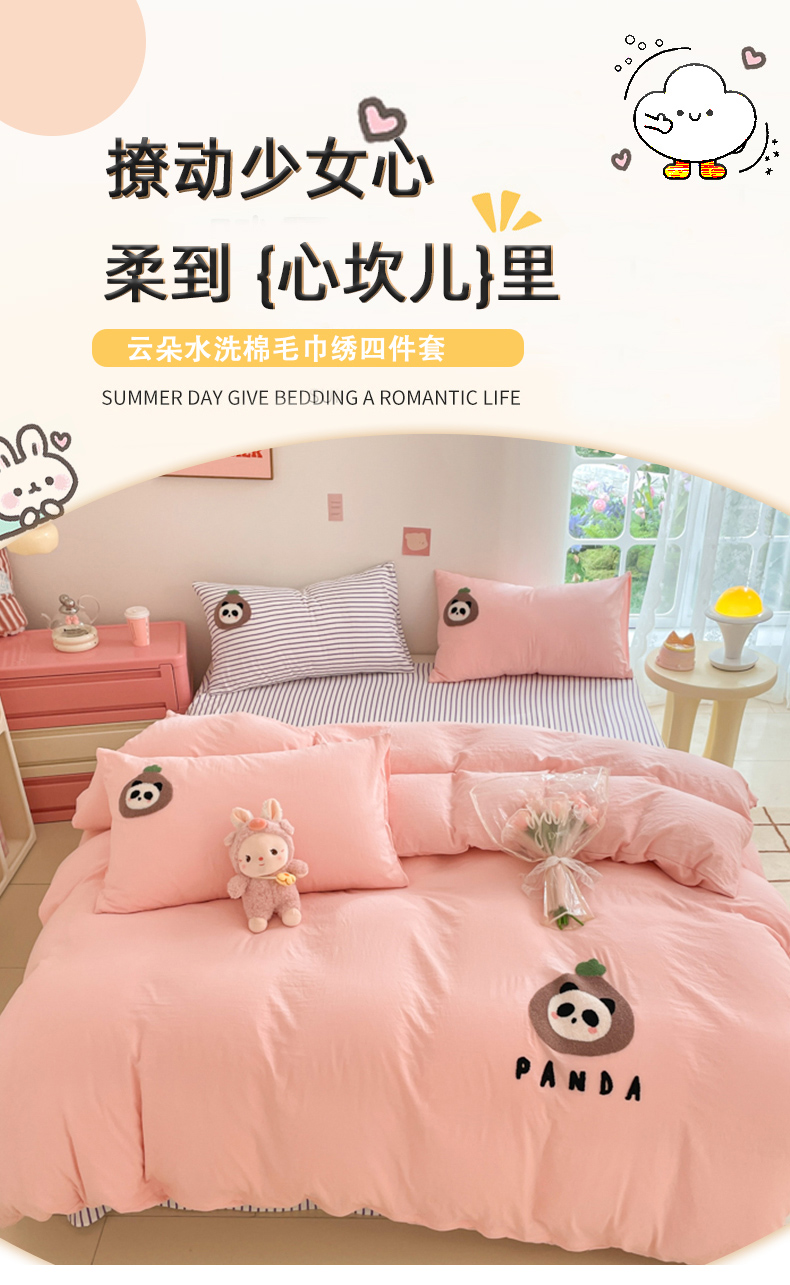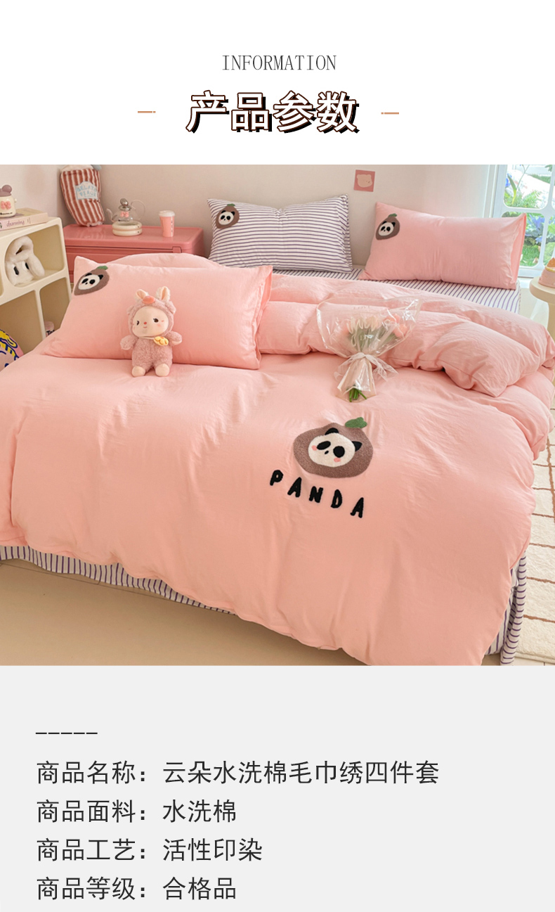 当前位置: 91家纺网 > 商品网购 > 床品套件 > 四件套 > 毛巾绣四件套 > 葡萄家纺 2024款水果熊猫系列云朵水洗棉毛巾绣四件套第二批(提供买家秀) 香芋波波-粉