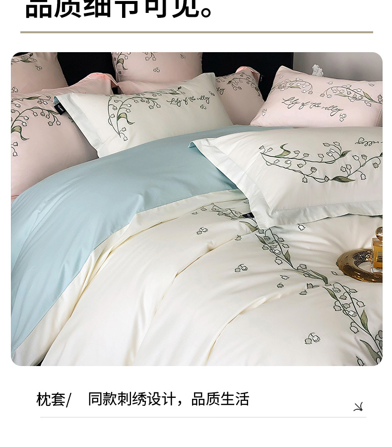 (总)卡姿家纺 2025春夏新款轻奢优雅刺绣金丝羽系列四件套,金丝羽白,金丝羽粉,金丝羽蓝,金丝羽紫