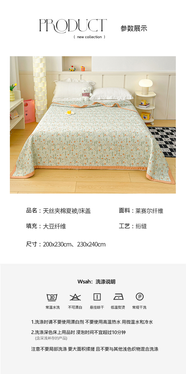 商品名称:OL家纺 2024新款单品天丝双面直角床盖 简兮-绿