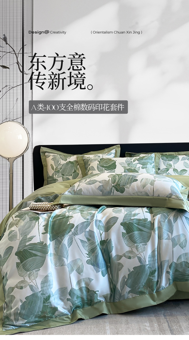 蓝米卡夫 2024新品-A类100支全棉活性数码拼角款-繁花系列 河畔