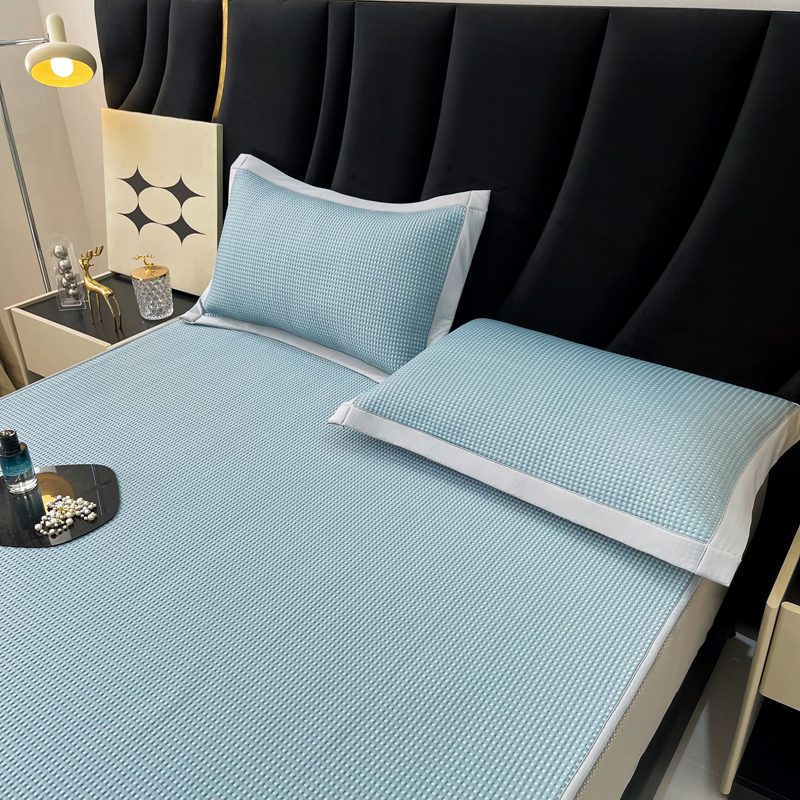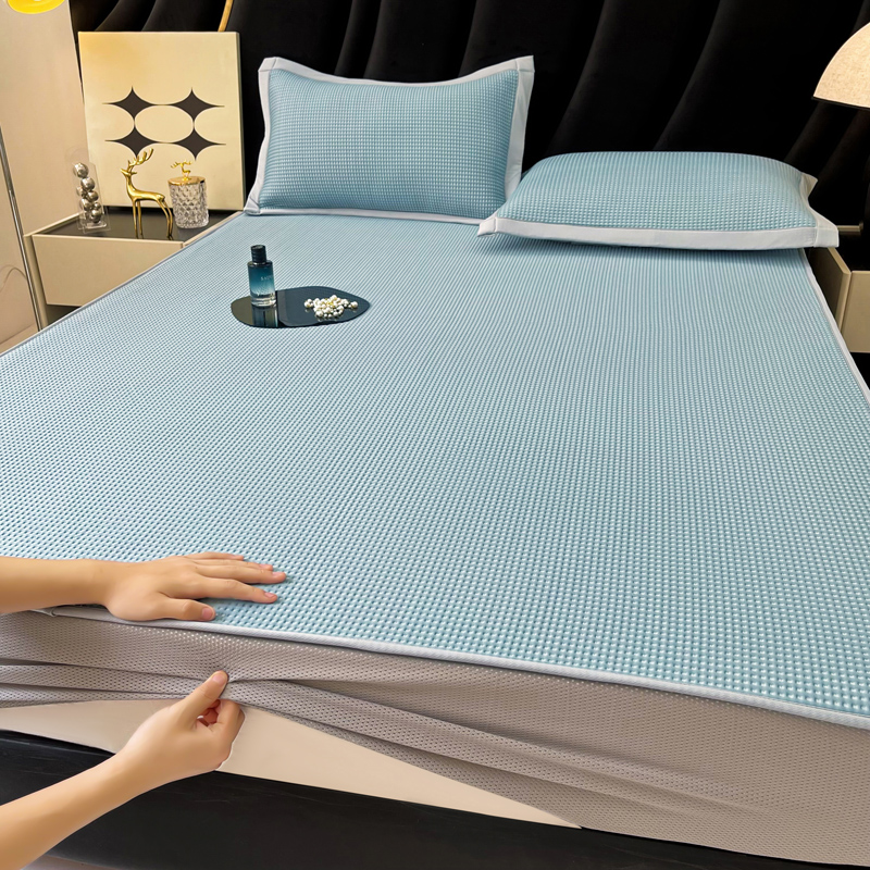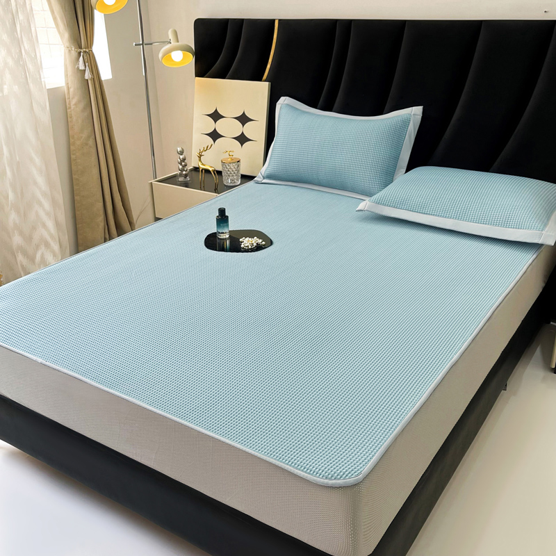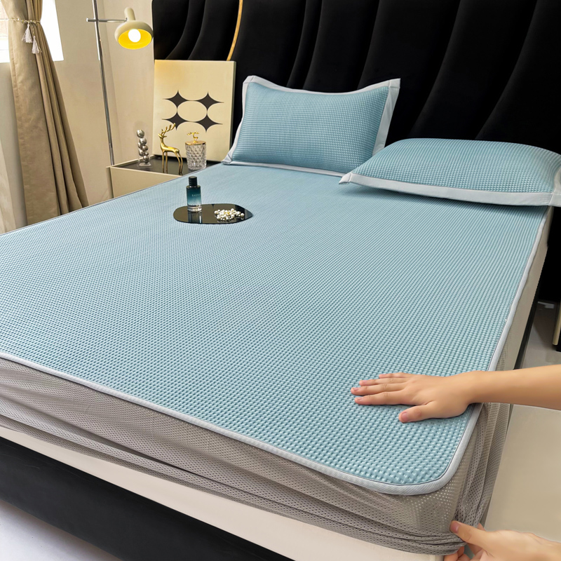 商品名称:慕尚 2025新款华夫格床笠凉席 华夫格蓝