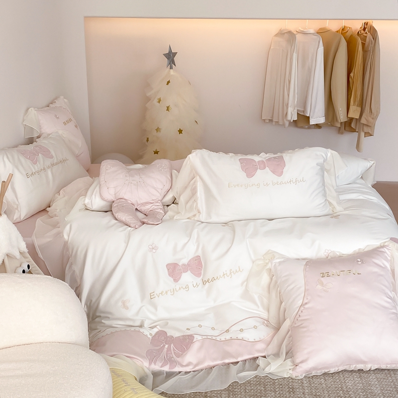 商品名称:(总)星野家居2024新款双股澳棉刺绣四件套轻奢公主风—邂逅