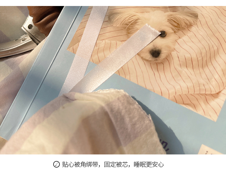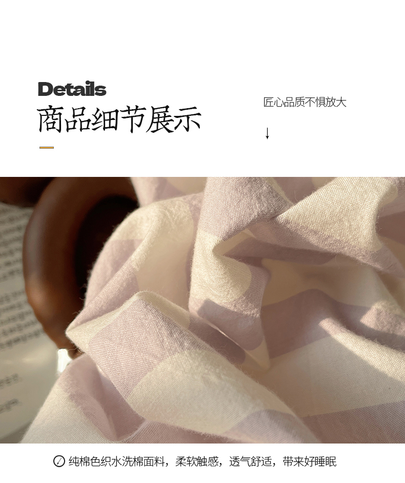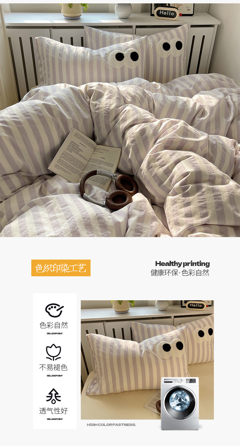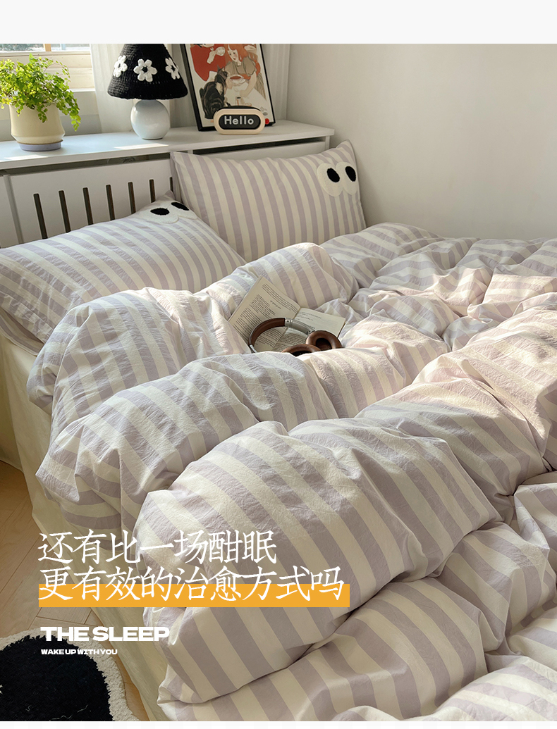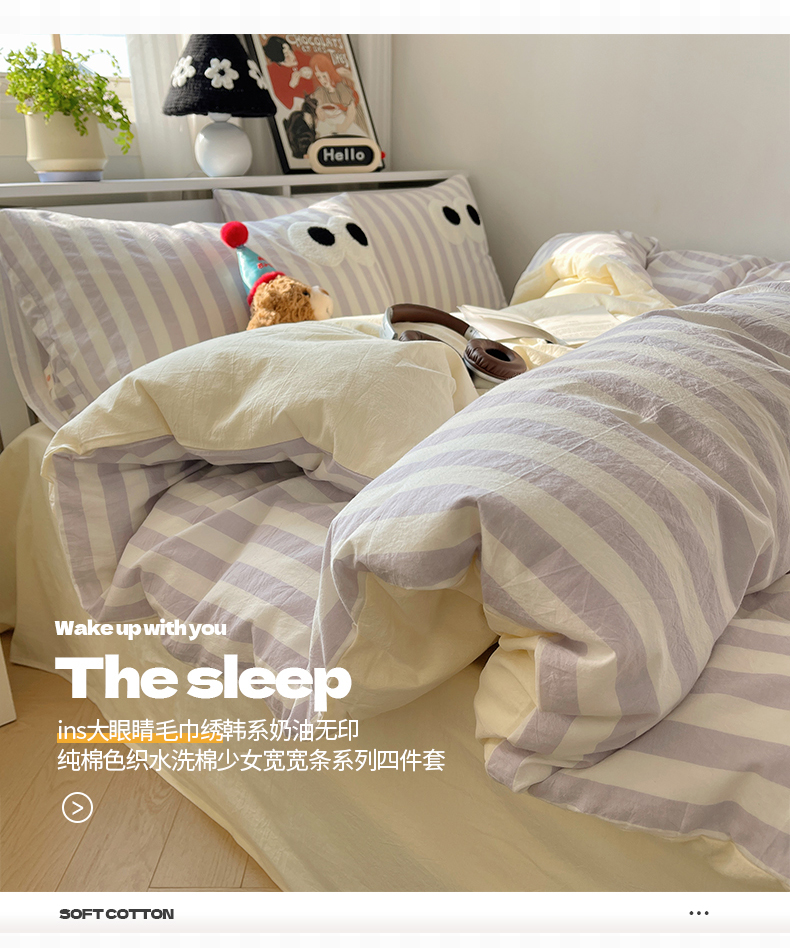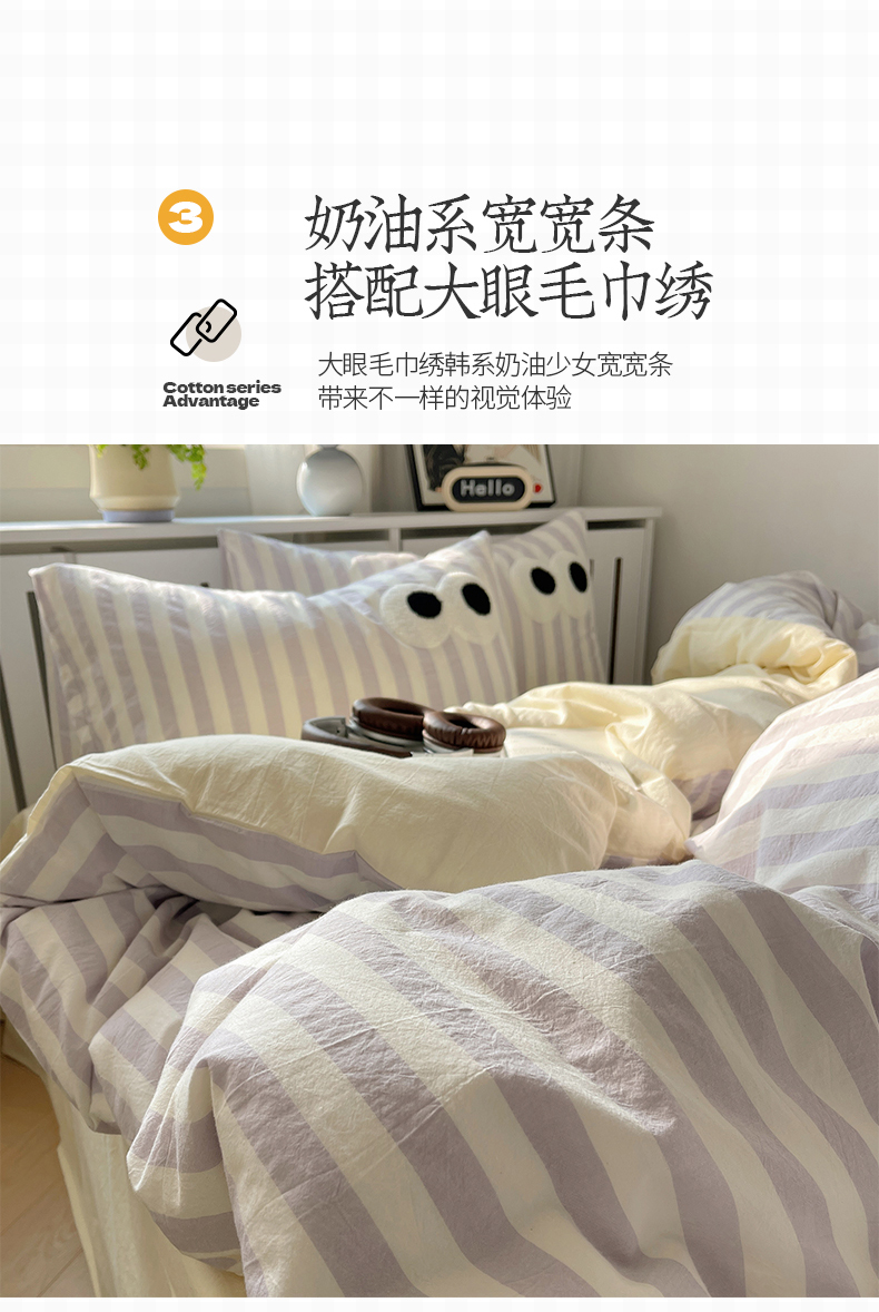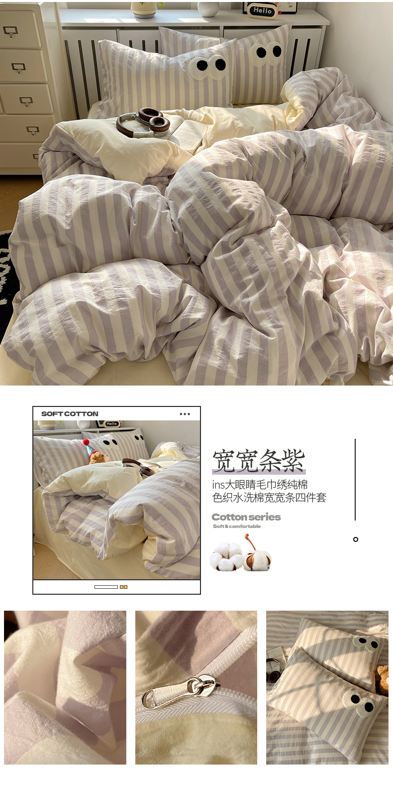 商品名称:桃子 2024新款ins大眼睛毛巾绣韩系奶油无印纯棉色织水洗棉少女宽宽条系列四件套 水洗棉-宽宽条紫