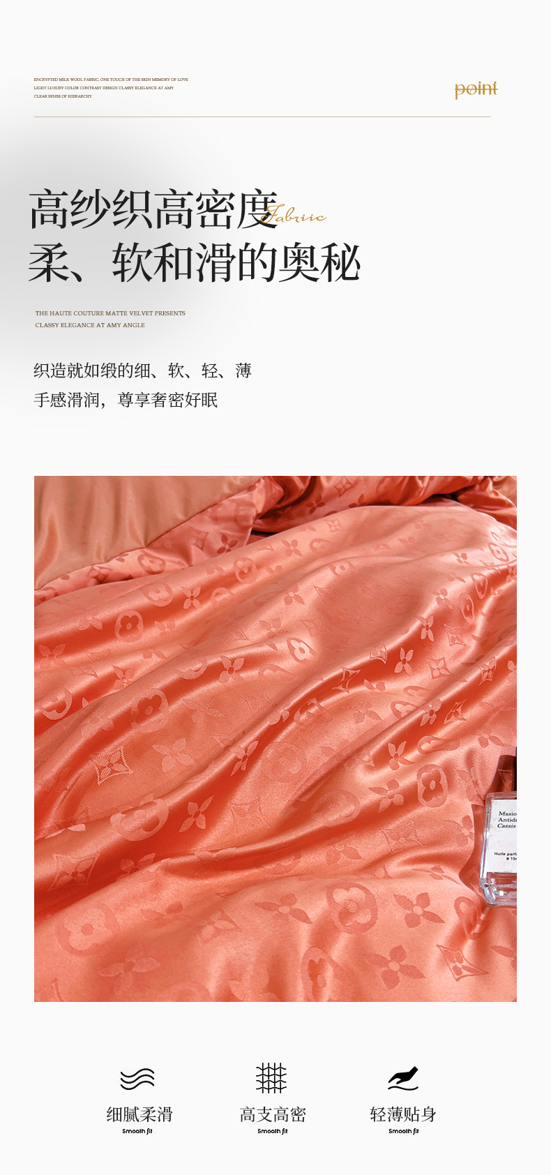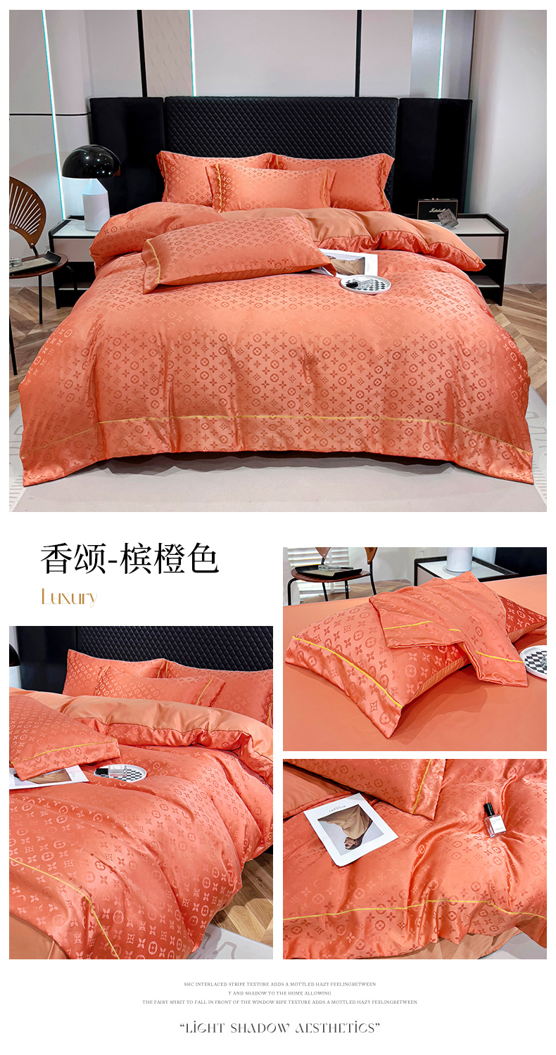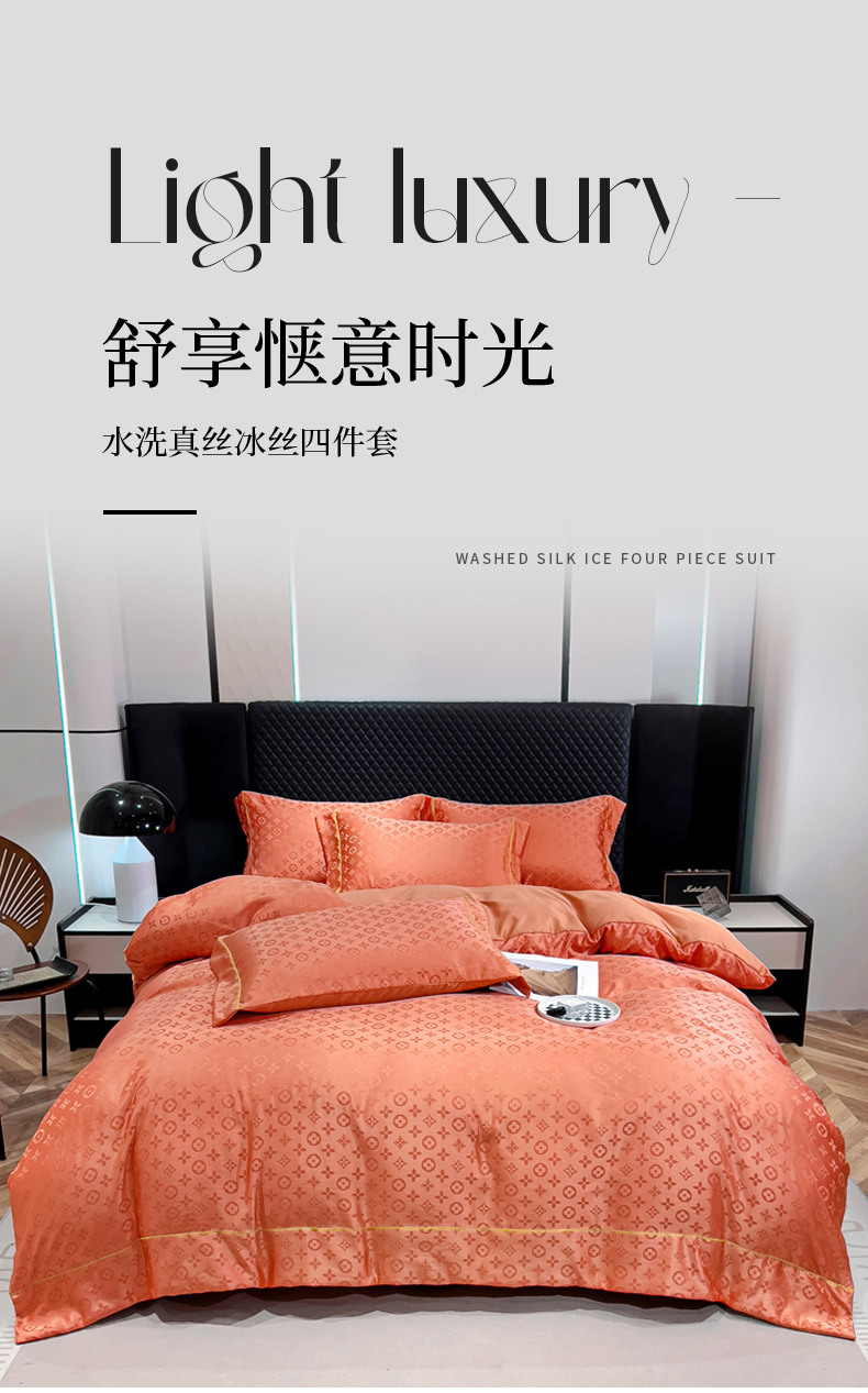 找底底家纺 2024新款水洗真丝冰丝四件套 香颂-槟橙色