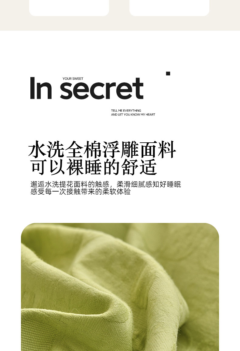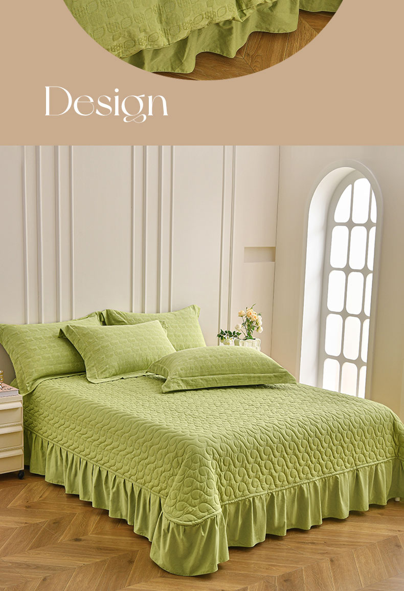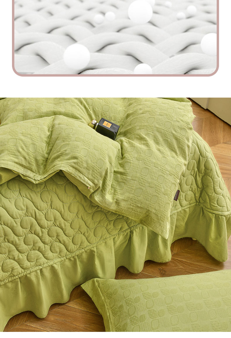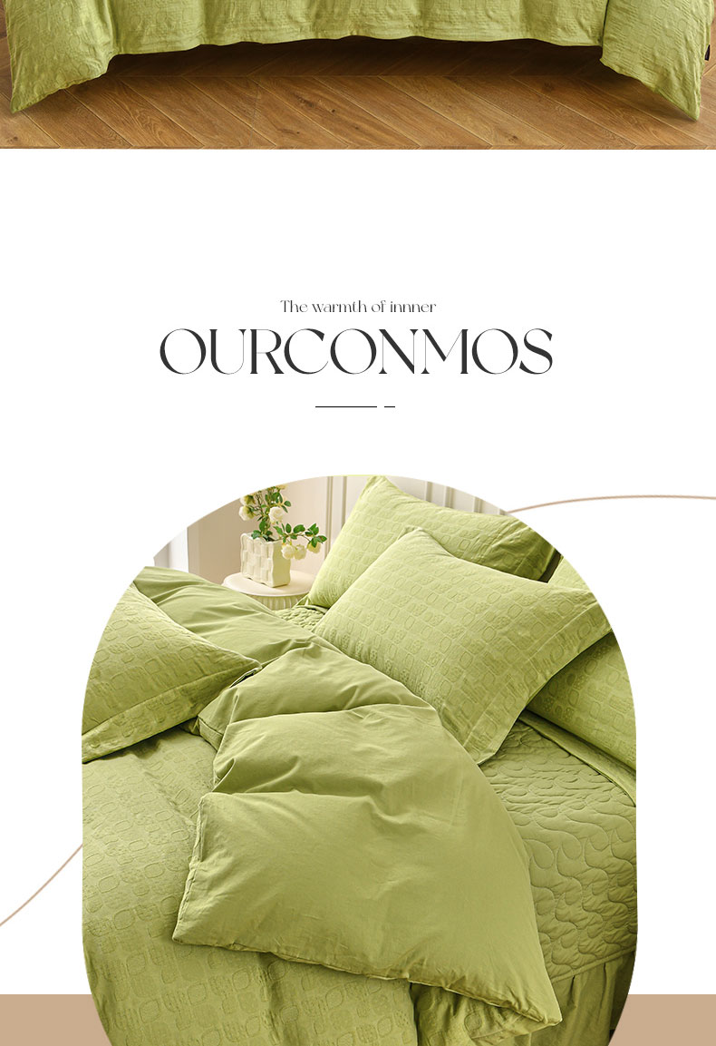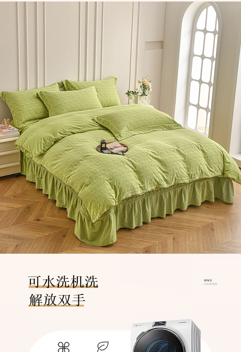 商品名称:金艾草 2024新款水洗全棉浮雕提花床盖四件套 片叶情-豆绿
