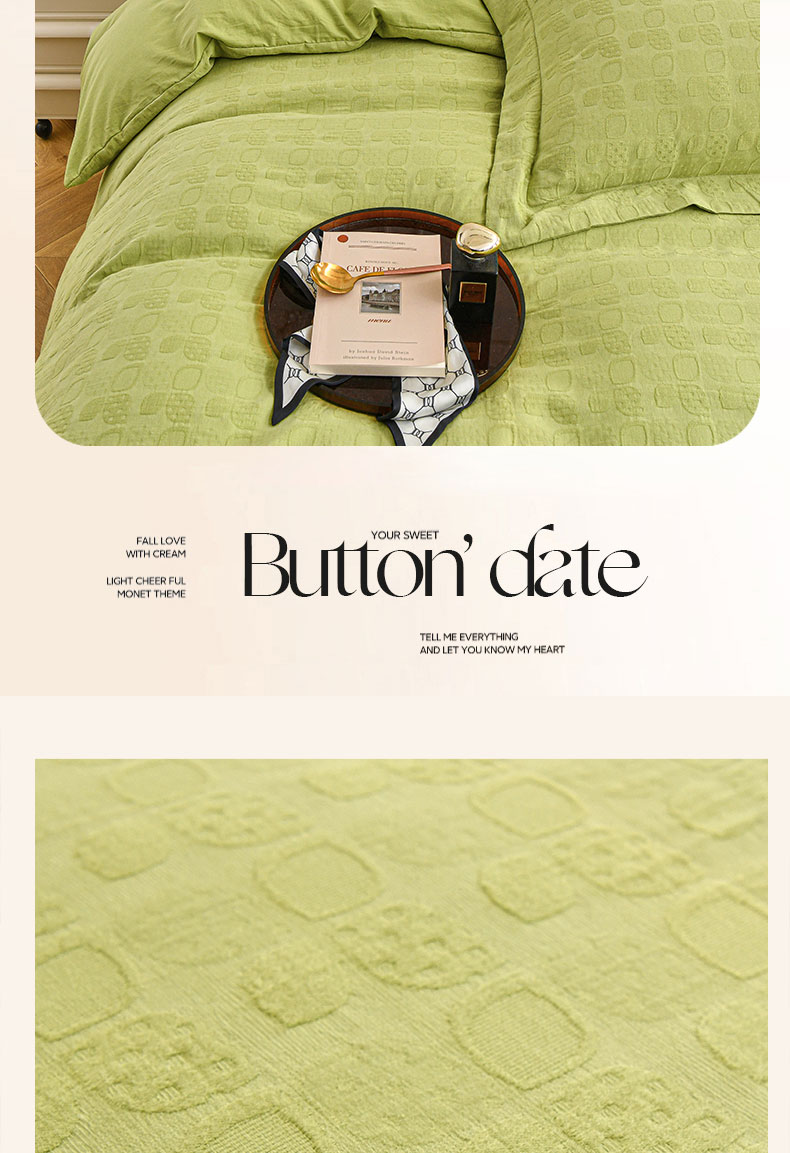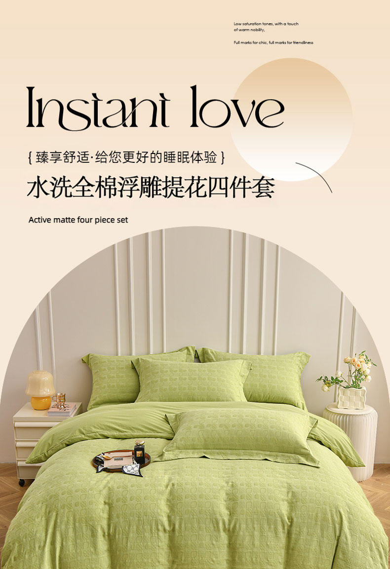 金艾草 2024新款水洗全棉浮雕提花床盖四件套 片叶情-豆绿