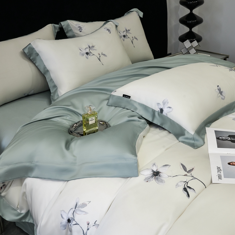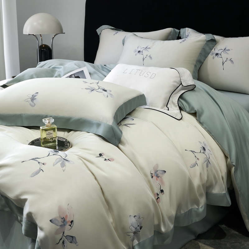 (总)时亿 2023新款100支长绒棉四件套苍兰之约,苍兰之约-橙,苍兰之约-绿