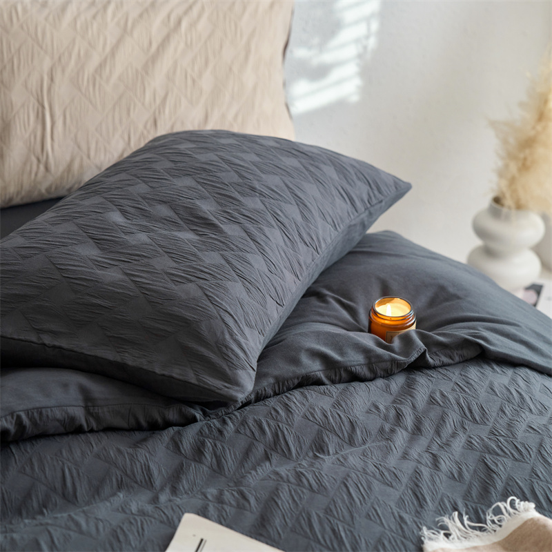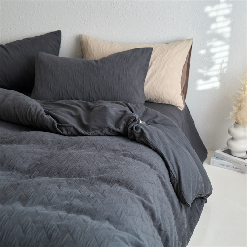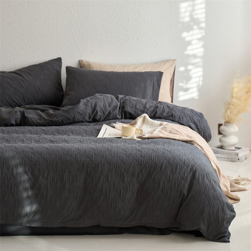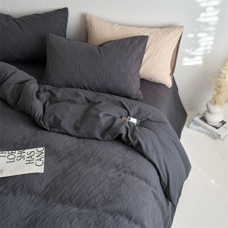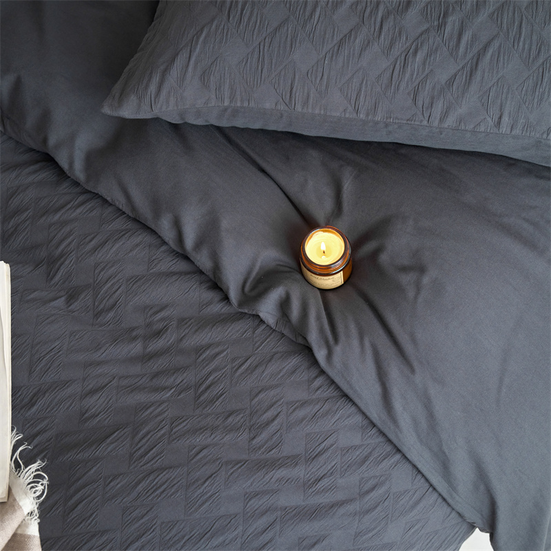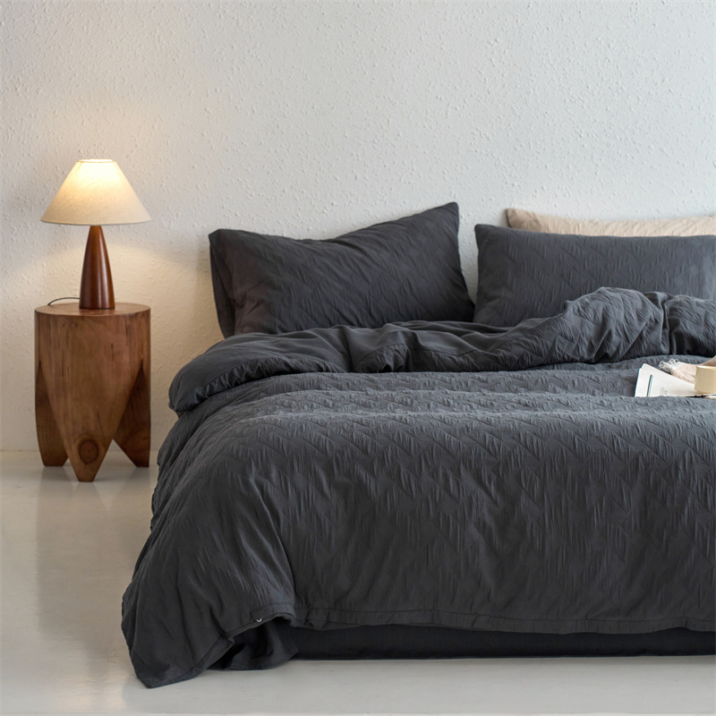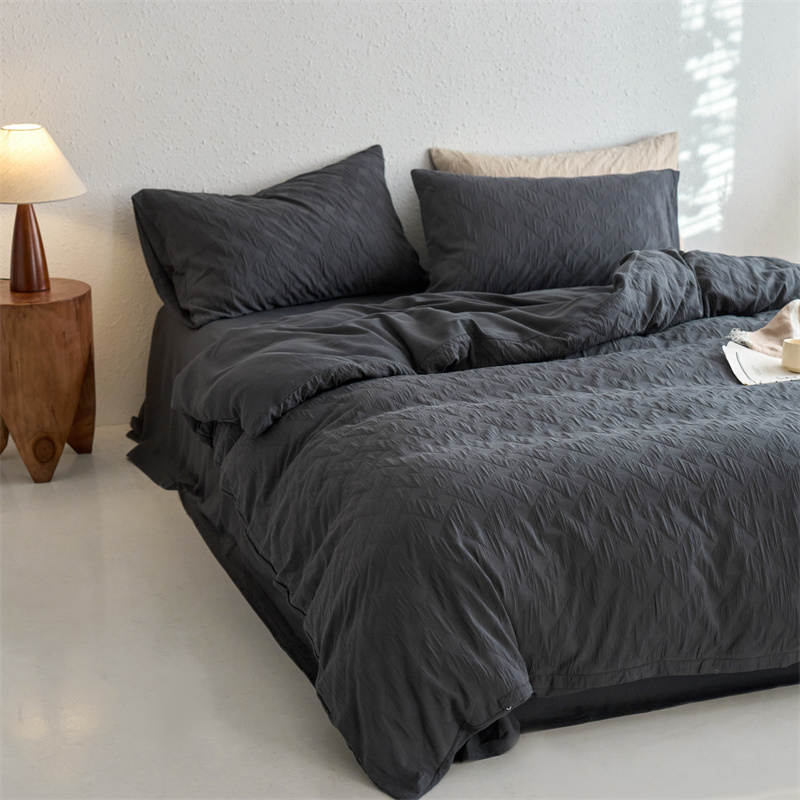 (总)梦享生活家居 2025新款全棉肌理纹提花四件套,灰黑色