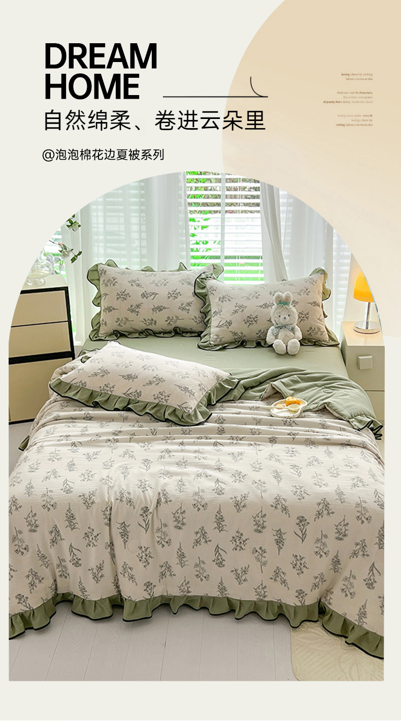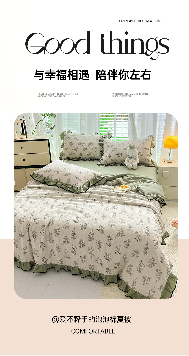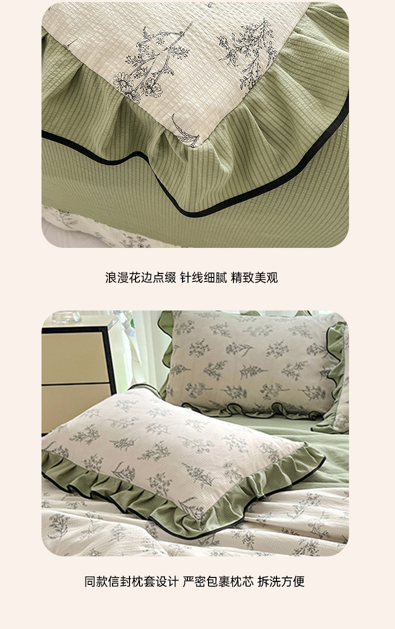 商品名称:韩约 2024新款1有氧提花时尚花边款泡泡夏被棉四件套 叶苏