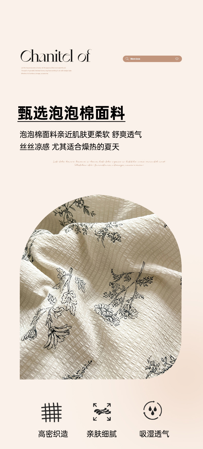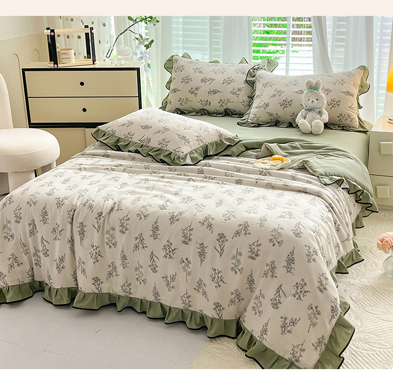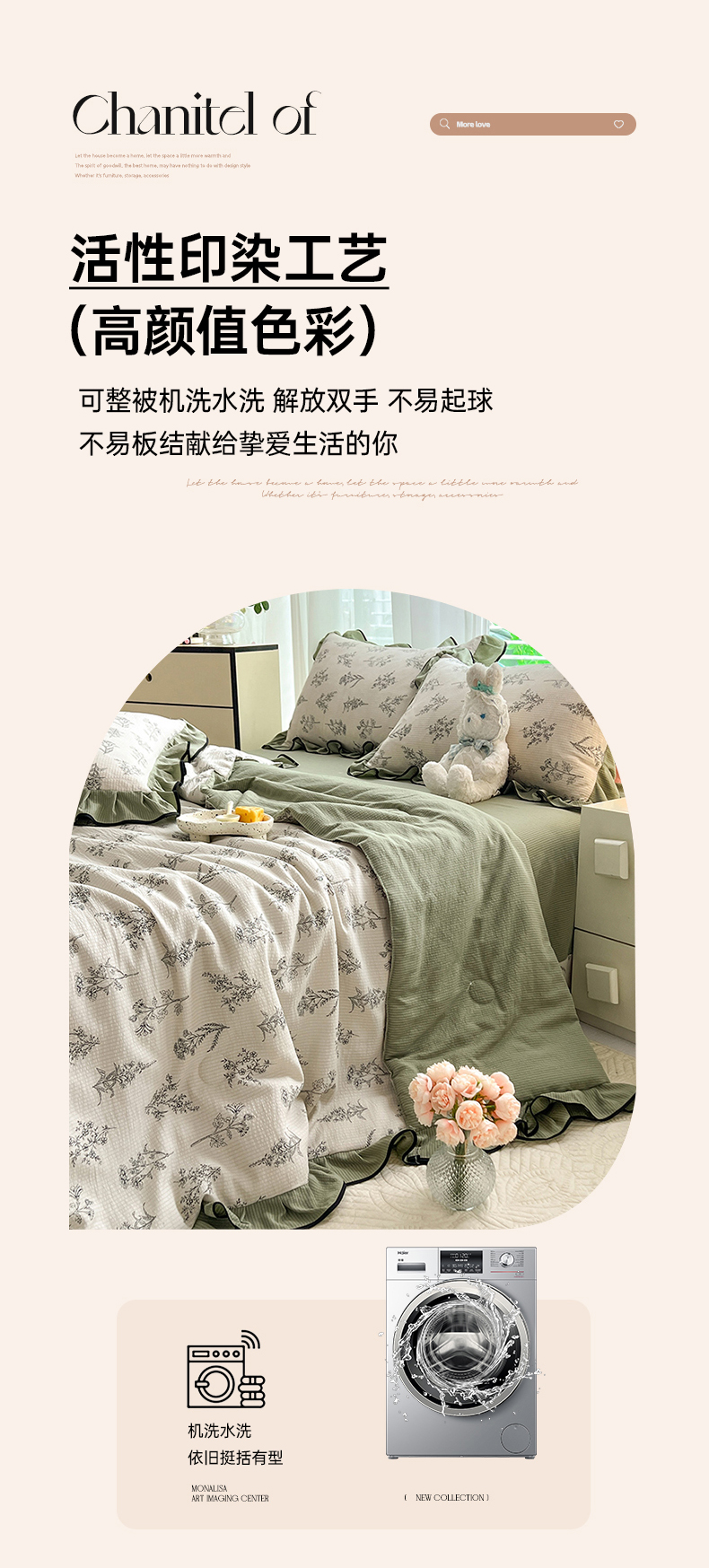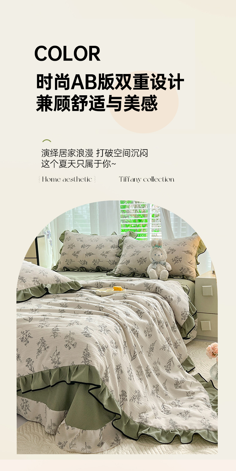 商品名称:韩约 2024新款1有氧提花时尚花边款泡泡夏被棉四件套 叶苏