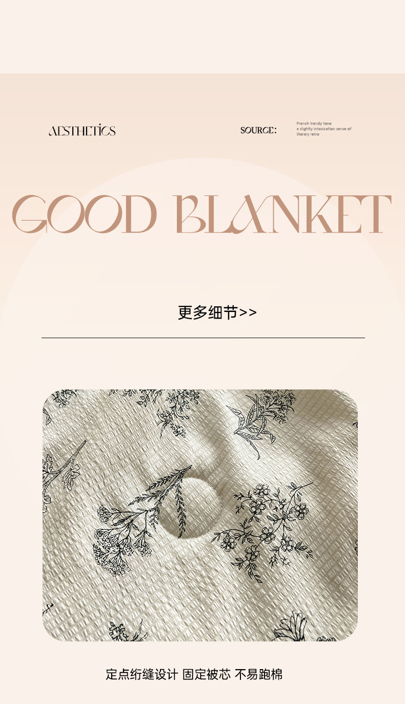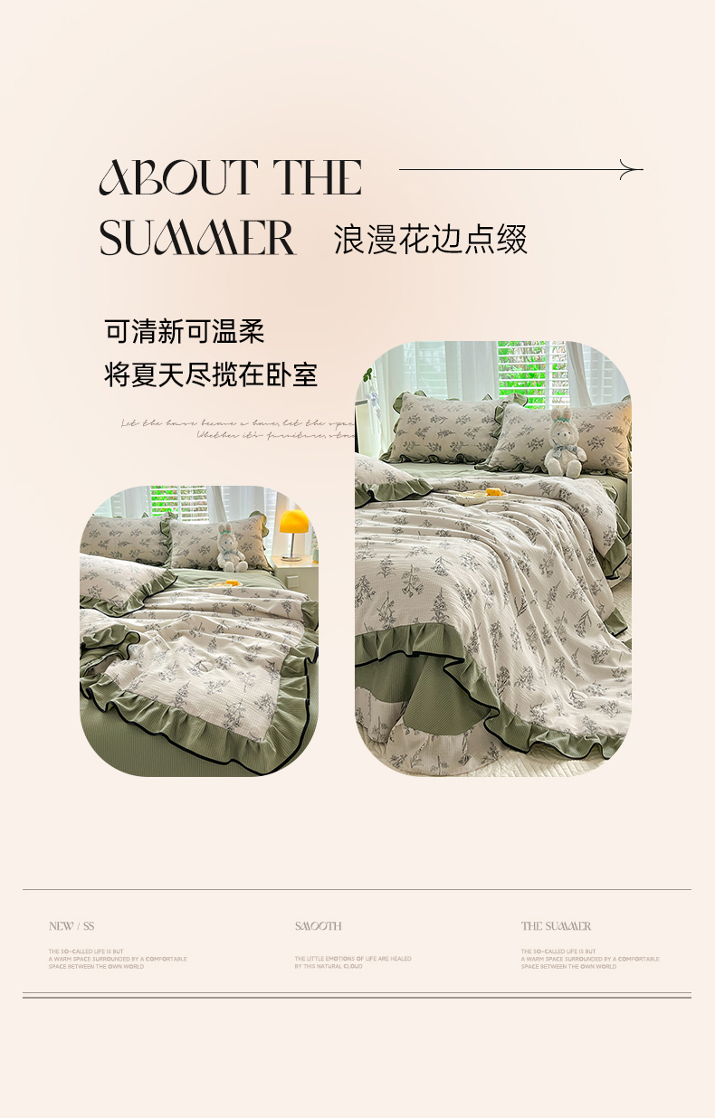 韩约 2024新款1有氧提花时尚花边款泡泡夏被棉四件套 叶苏