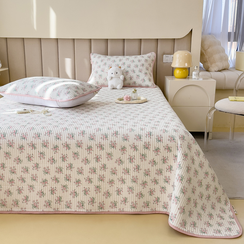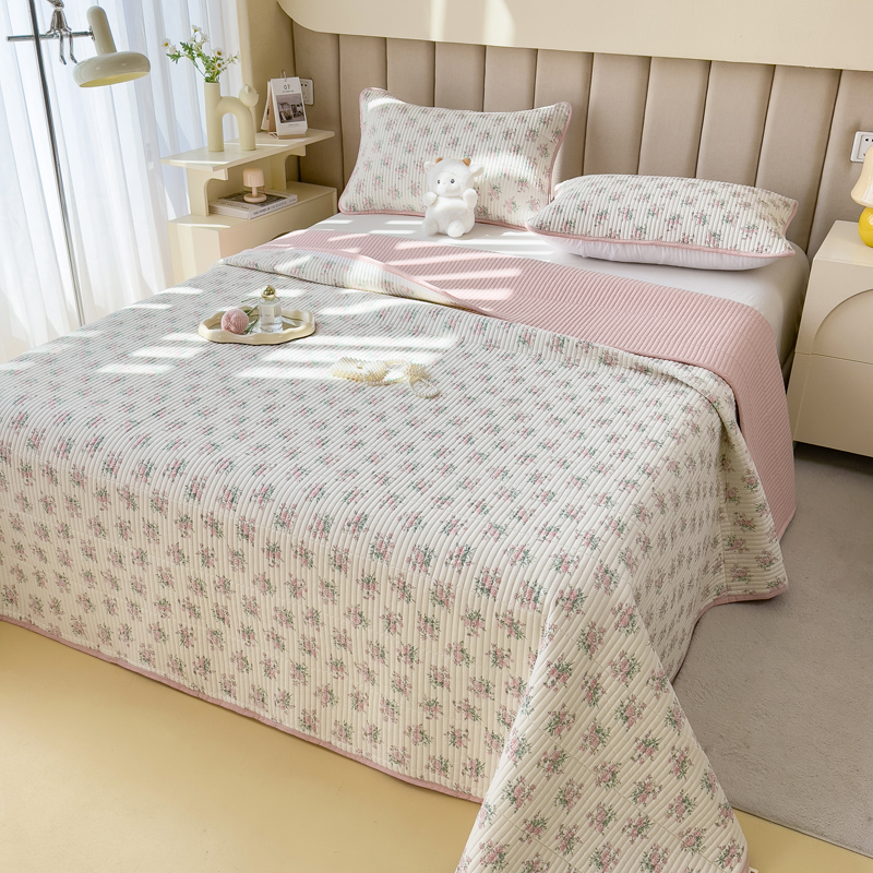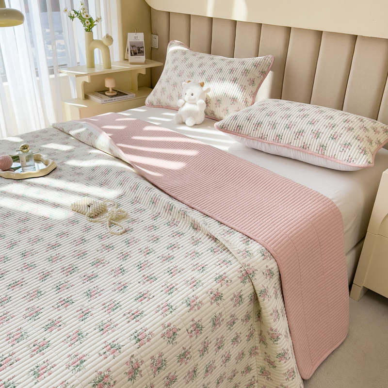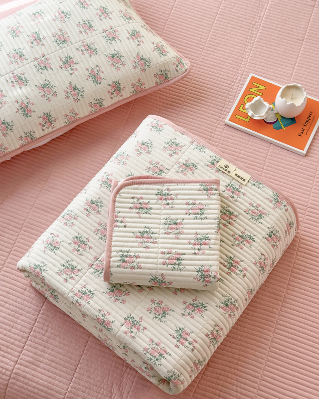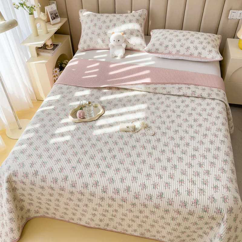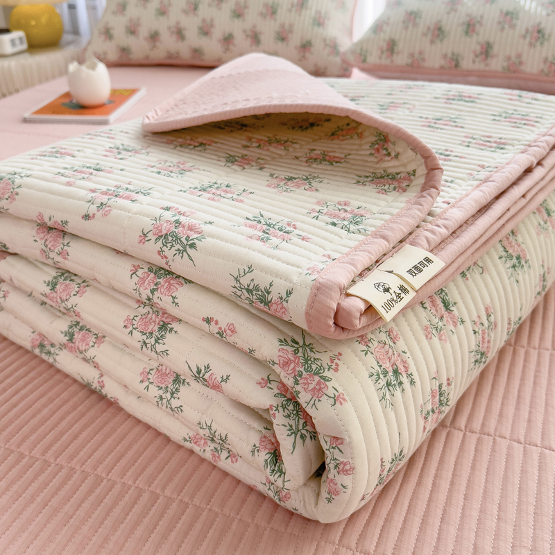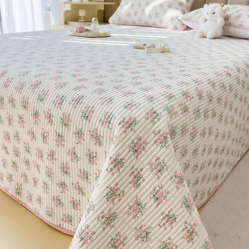 梵朴 2024新款纯棉水洗棉印花床盖 粉玫瑰
