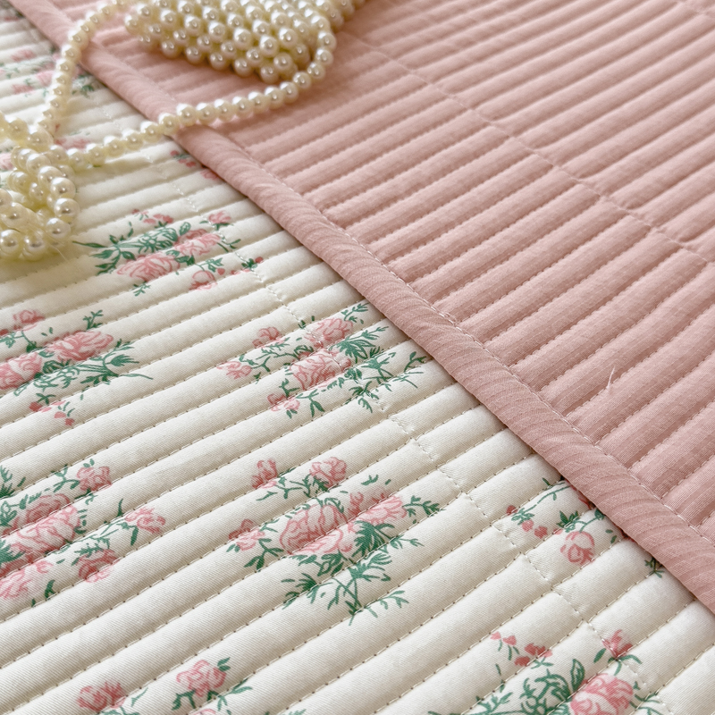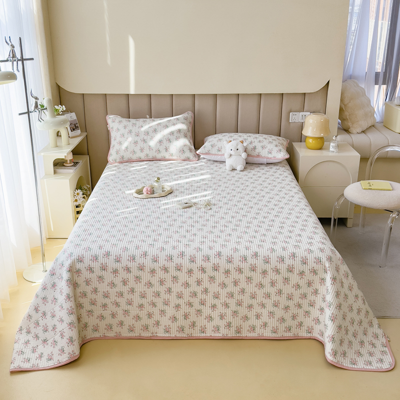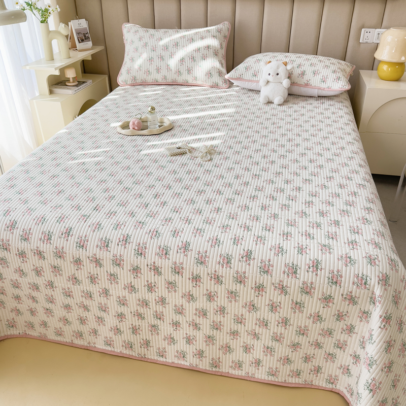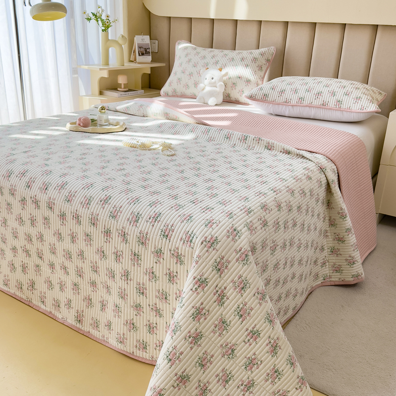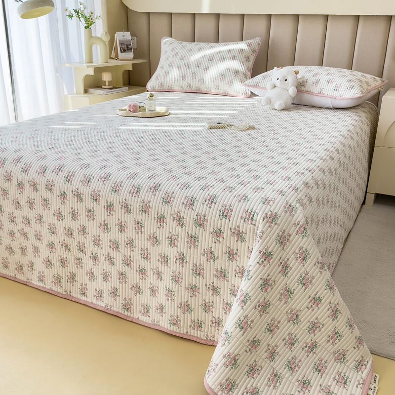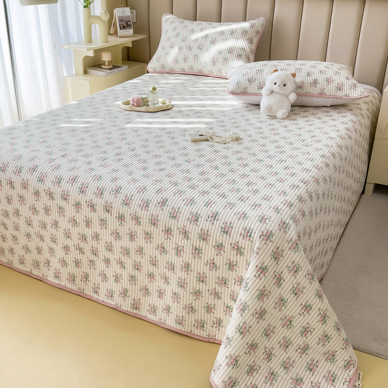 梵朴 2024新款纯棉水洗棉印花床盖 粉玫瑰