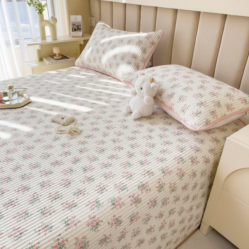 商品名称:梵朴 2024新款纯棉水洗棉印花床盖 粉玫瑰