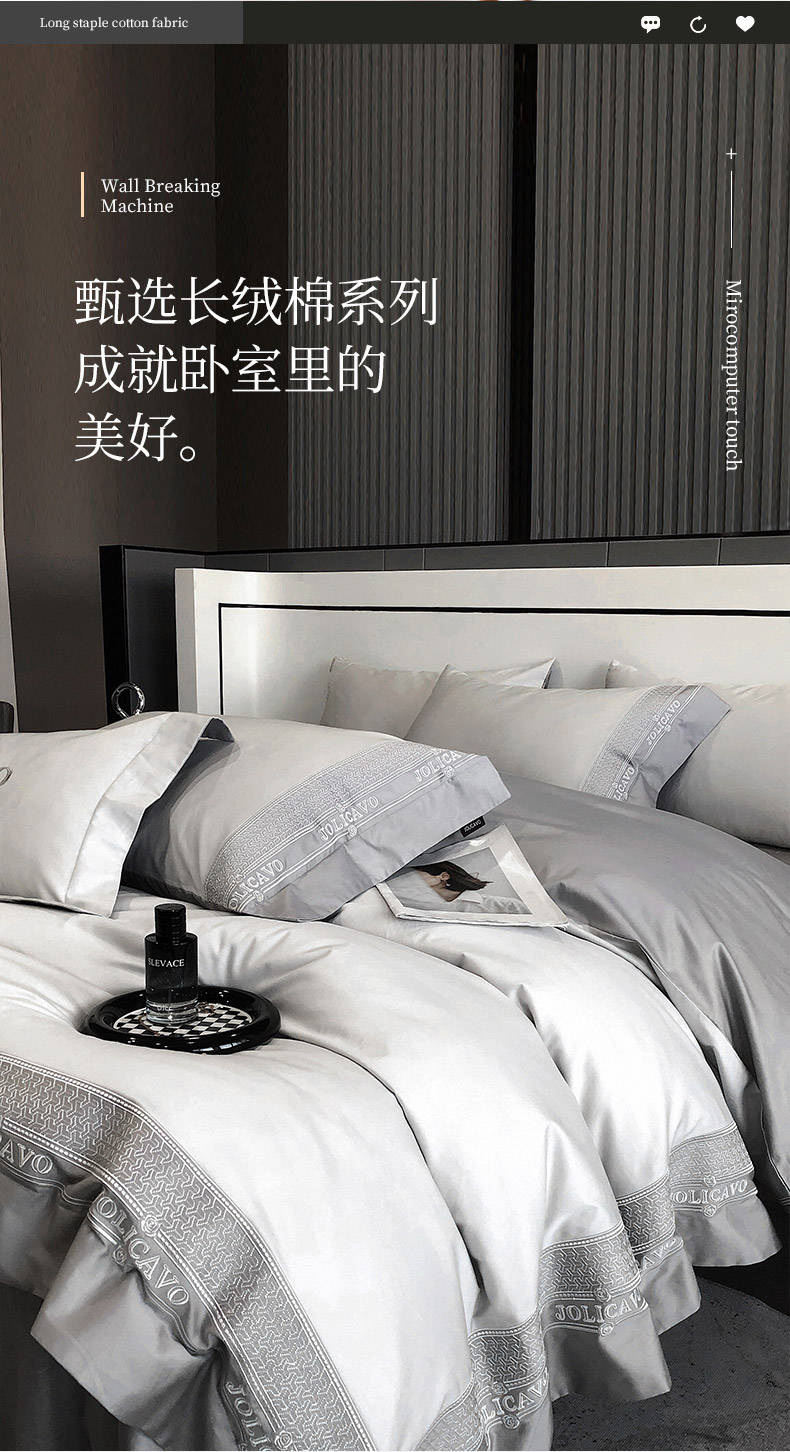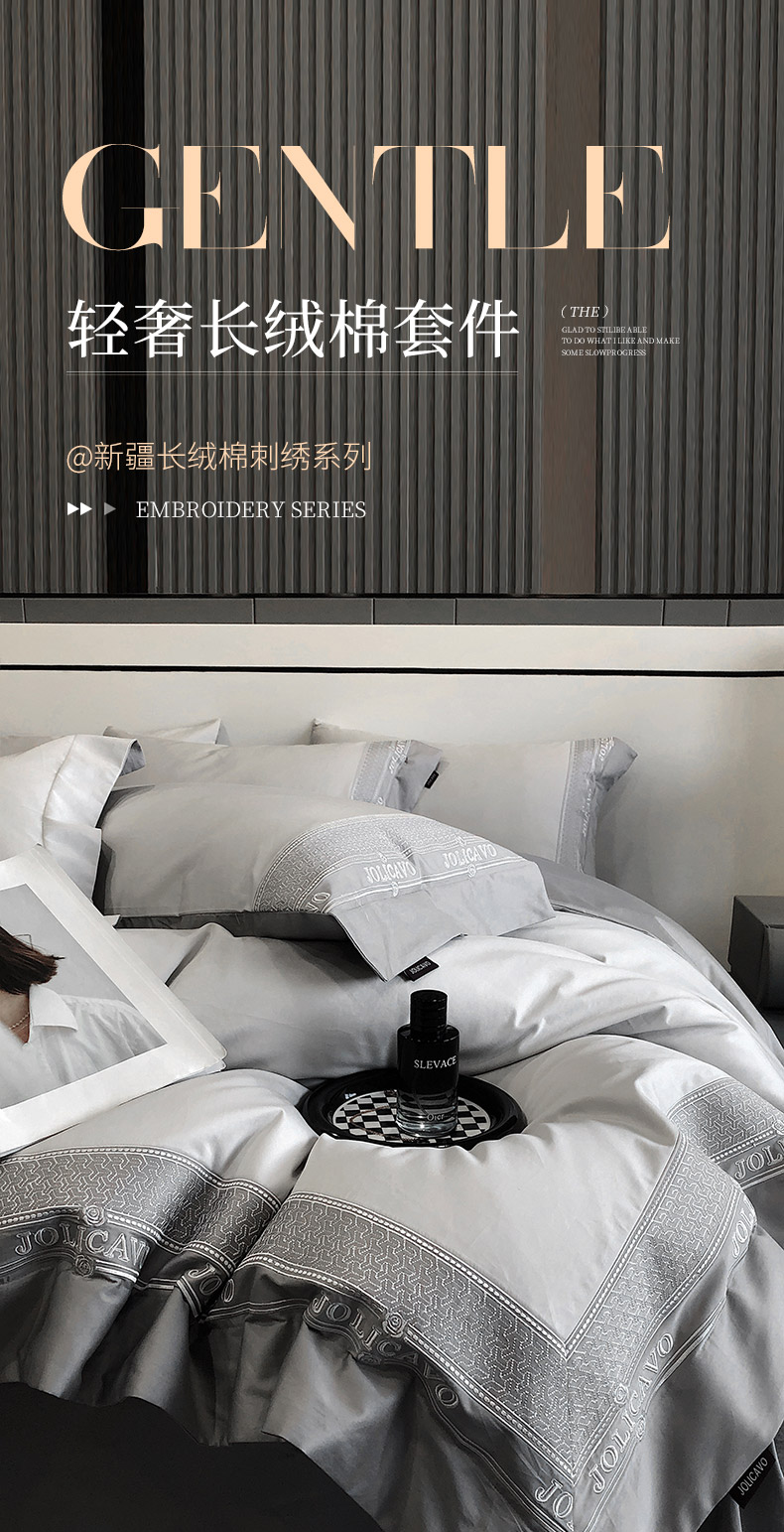 当前位置: 91家纺网 > 商品网购 > 床品套件 > 四件套 > 长绒棉四件套 > 【2024高端奢品】A类母婴级100支长绒棉四件套重工刺绣轻奢风拼接款澳棉简约床上用品 奥蒂斯-优雅灰