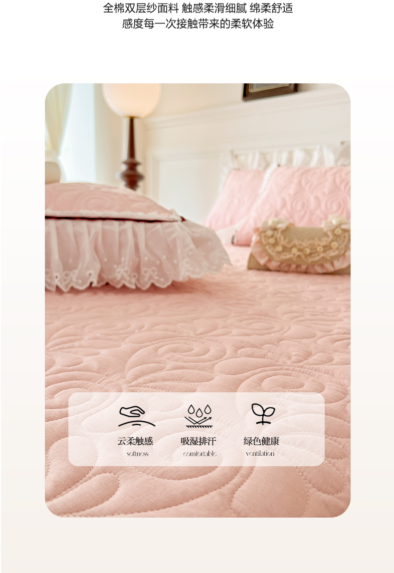 商品名称:网红馆 2025新款全棉双层纱花边款爱丽丝系列单床裙 樱花粉