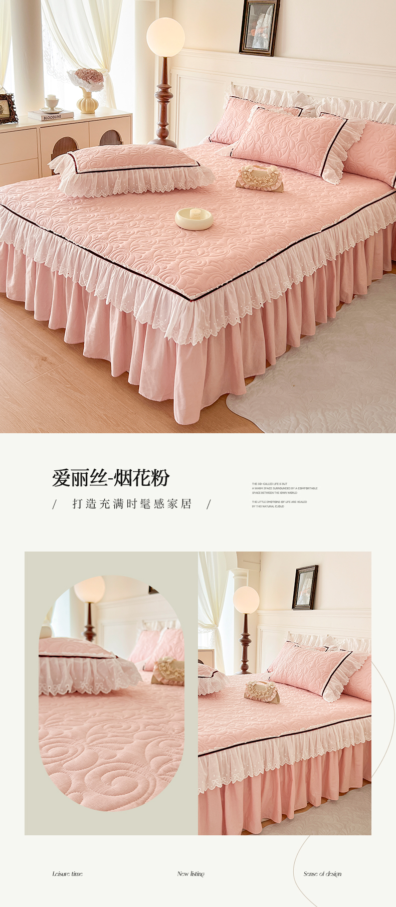(总)网红馆(ck家纺) 2025新款牛奶绒花边床盖四件套-甜蜜蜜,甜蜜蜜-粉,甜蜜蜜-咖,甜蜜蜜-绿,甜蜜蜜-米,甜蜜蜜-紫