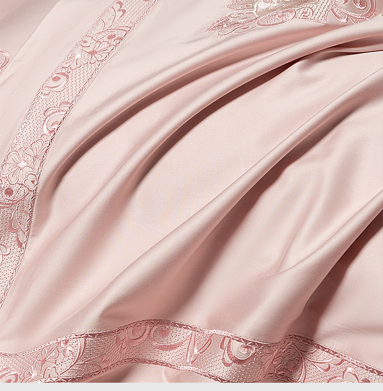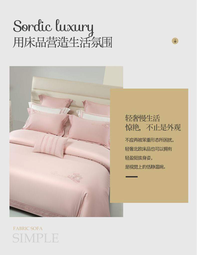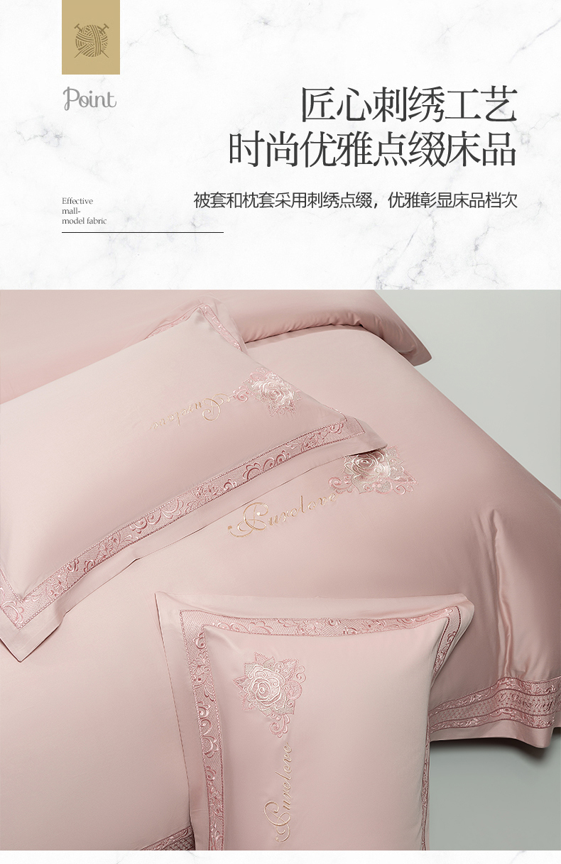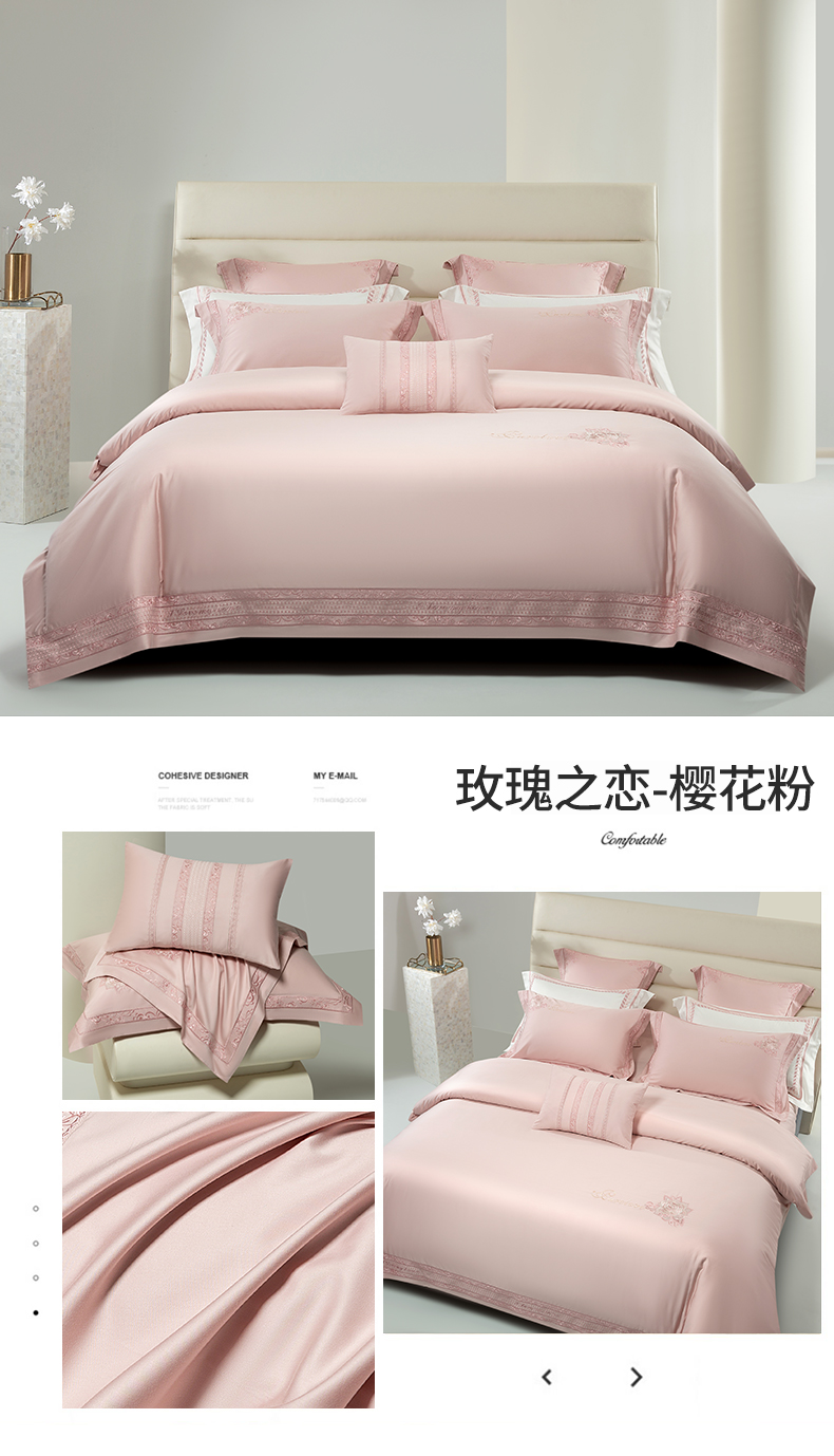 商品名称:高大尚婚庆馆 2025新款长绒棉高端绣花四件套-玫瑰之恋系列 樱花粉