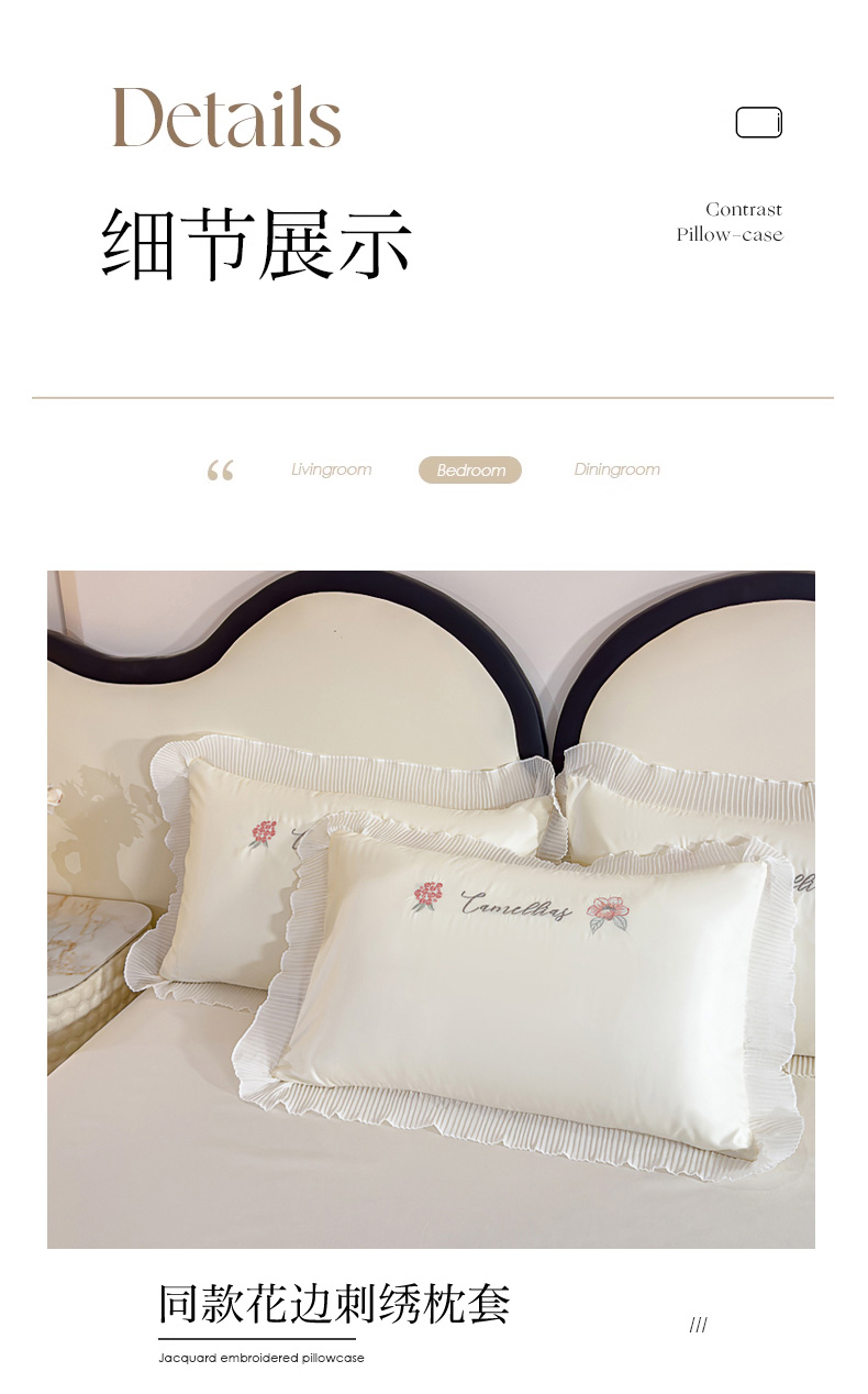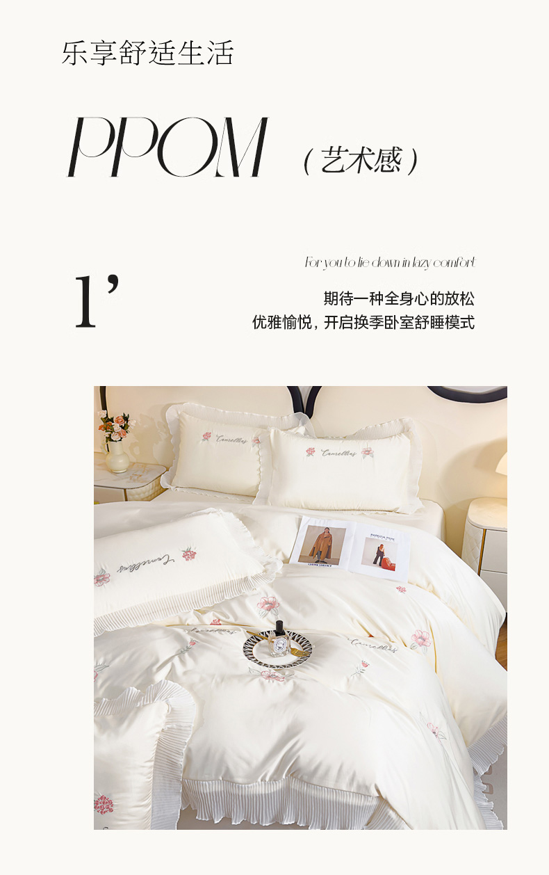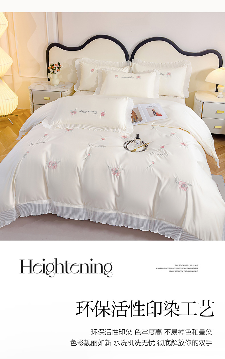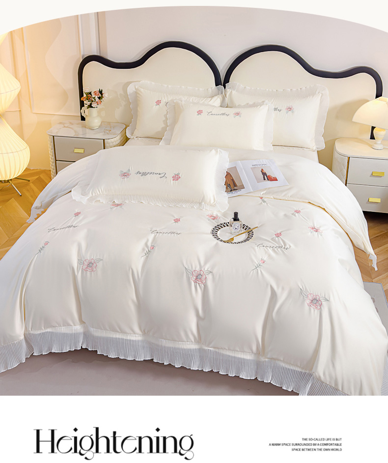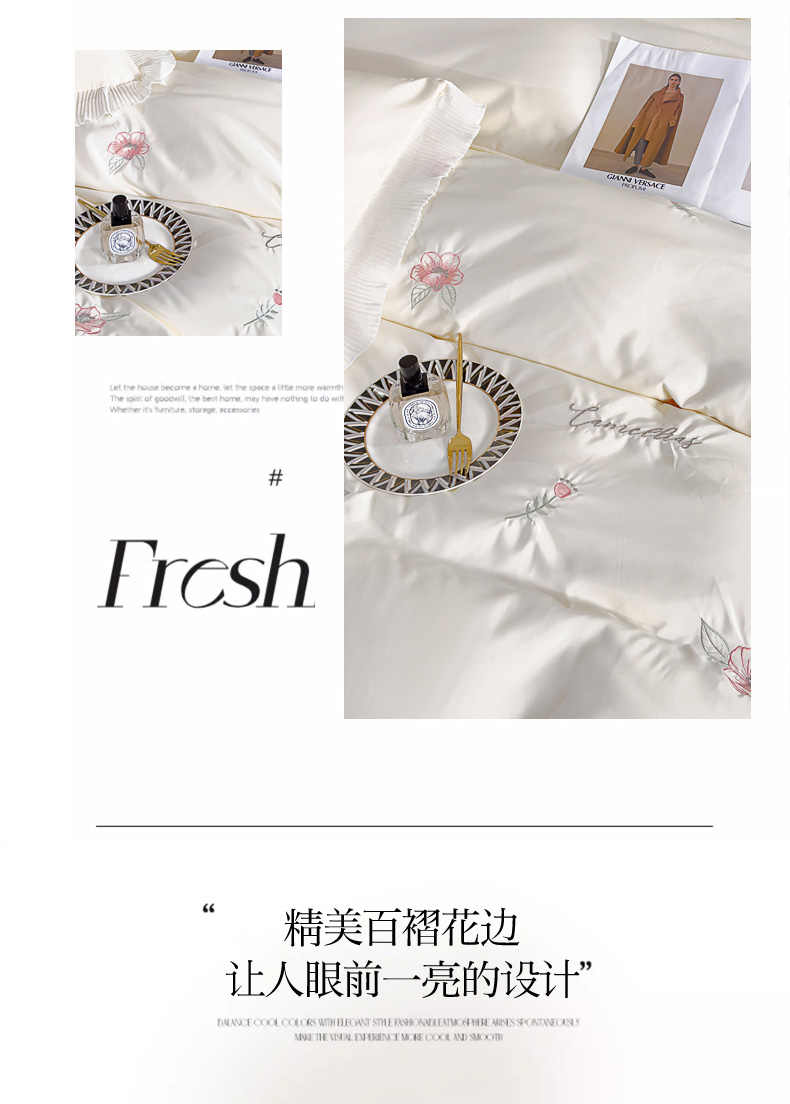 当前位置: 91家纺网 > 商品网购 > 床品套件 > 四件套 > 水洗棉四件套 > 菲儿家纺 2024新款水洗真丝花边刺绣四件套-花样年华系列 珍珠白