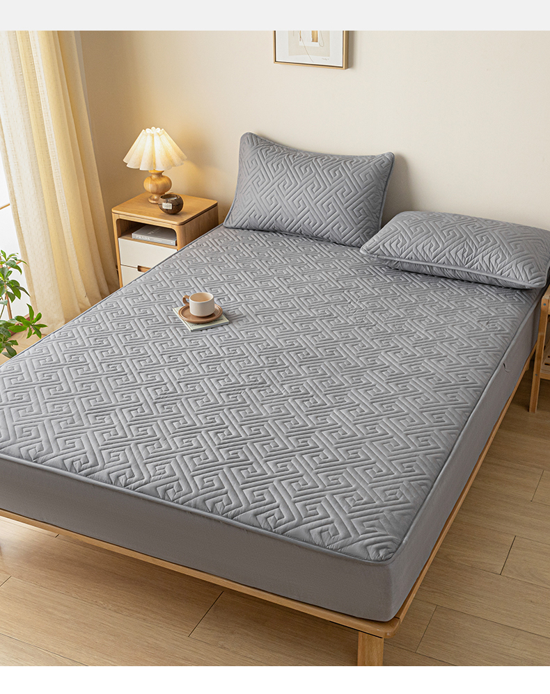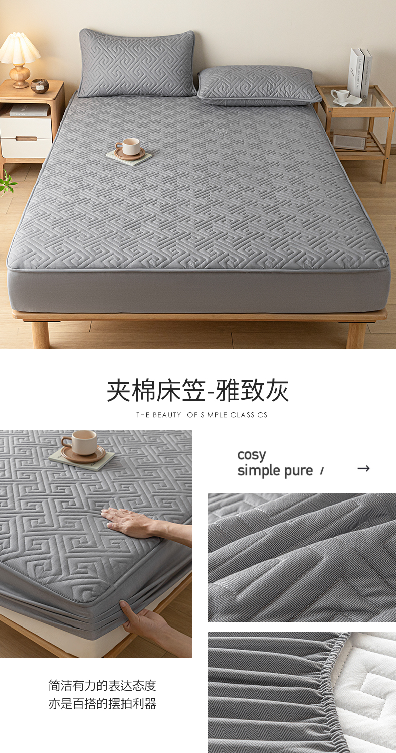 古吉梦 2024新款水洗棉磨毛夹棉床笠 夹棉床笠-雅致灰