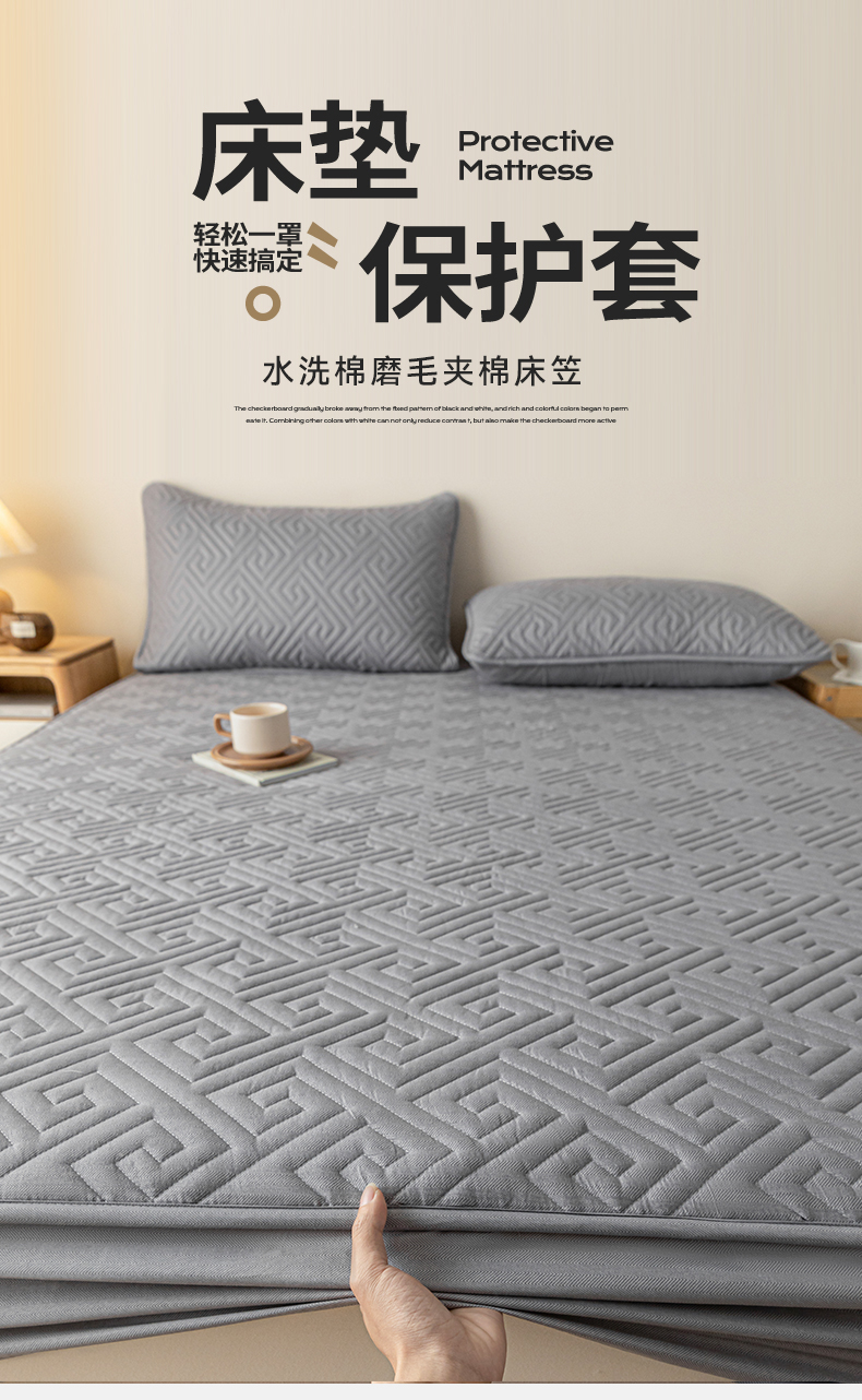• 91家纺网 家纺一手货源 找家纺 古吉梦 2024新款水洗棉磨毛夹棉床笠 夹棉床笠-雅致灰