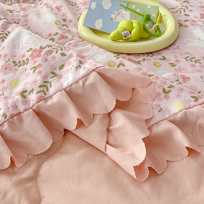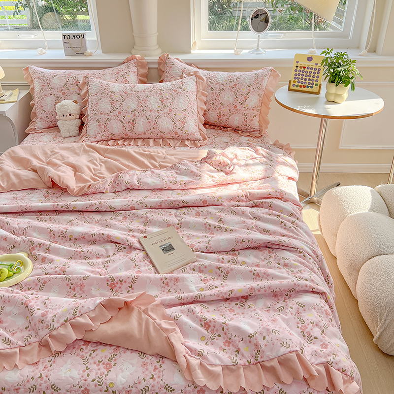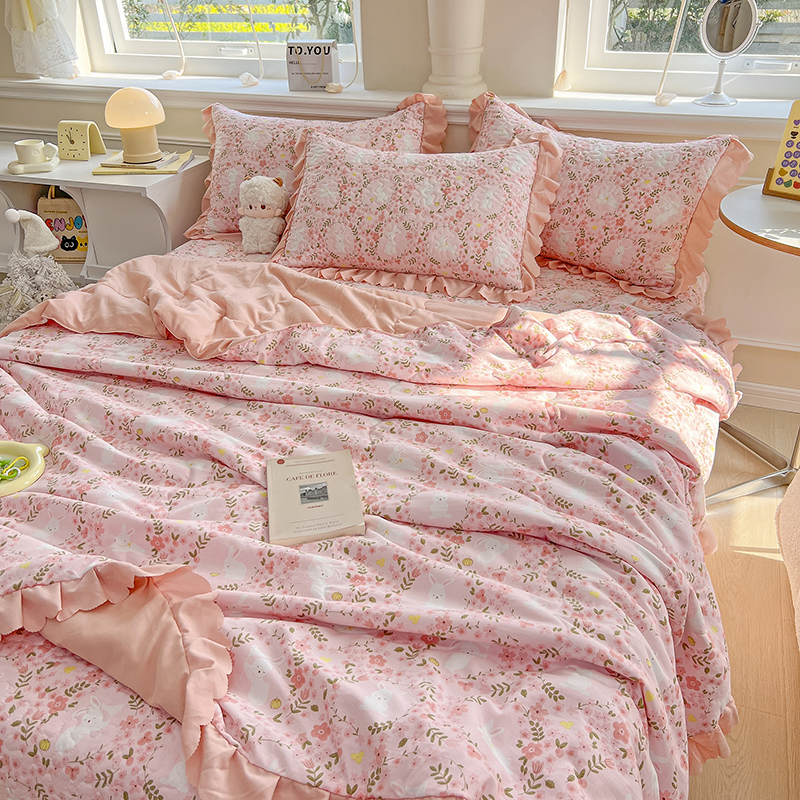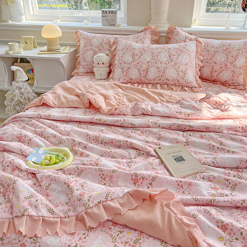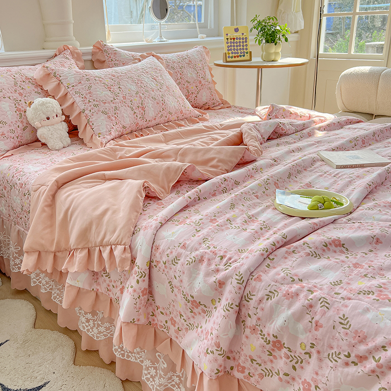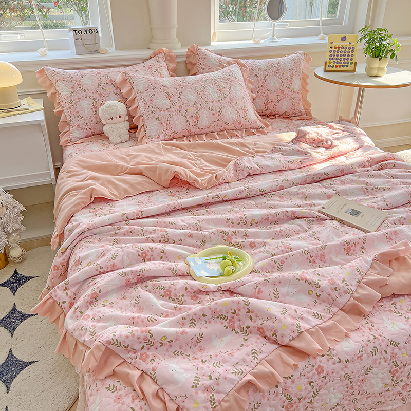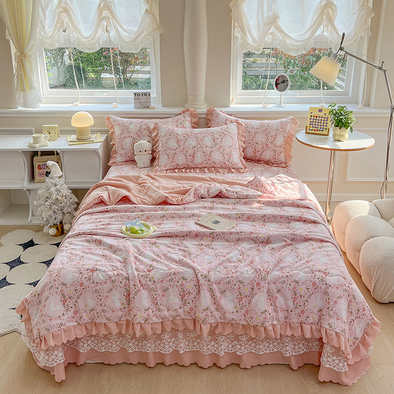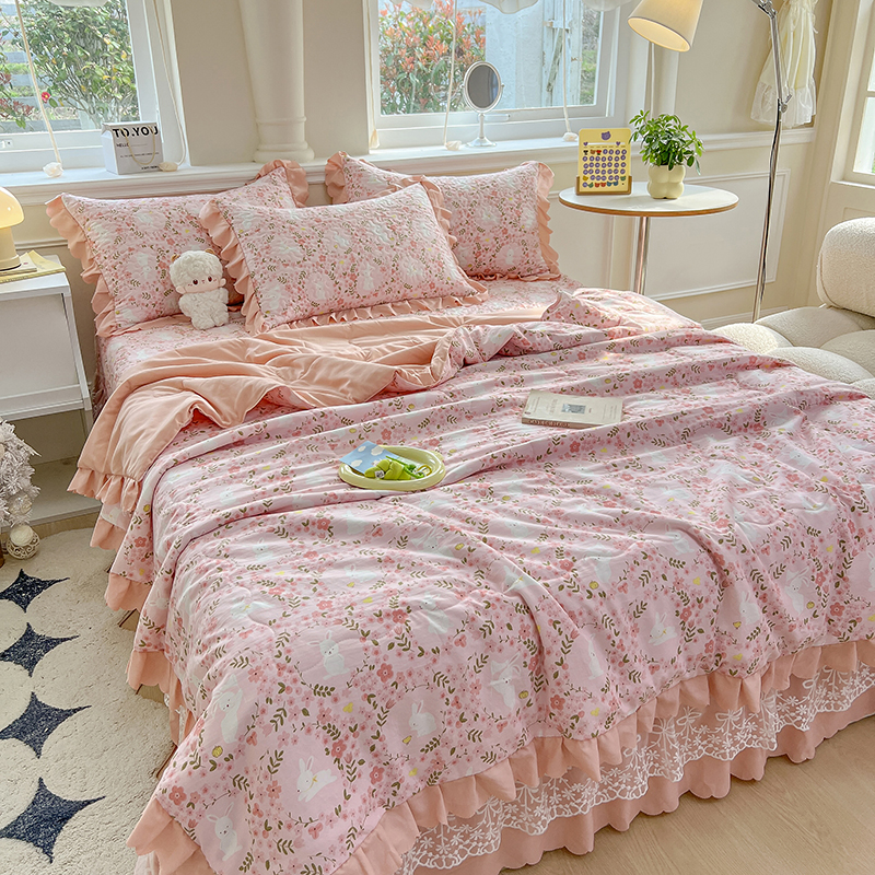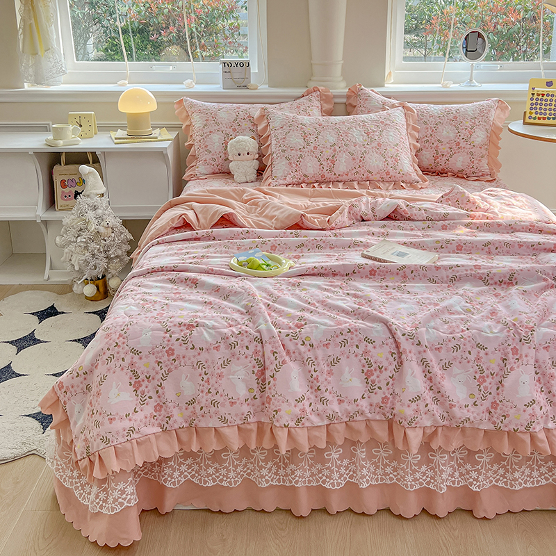 当前位置: 91家纺网 > 商品网购 > 床品套件 > 四件套 > 夏被四件套 > 雅眠居 2024直播爆款泡泡棉床盖款夏被四件套双层蕾丝花边夹棉床裙款三件套 小桃兔兔