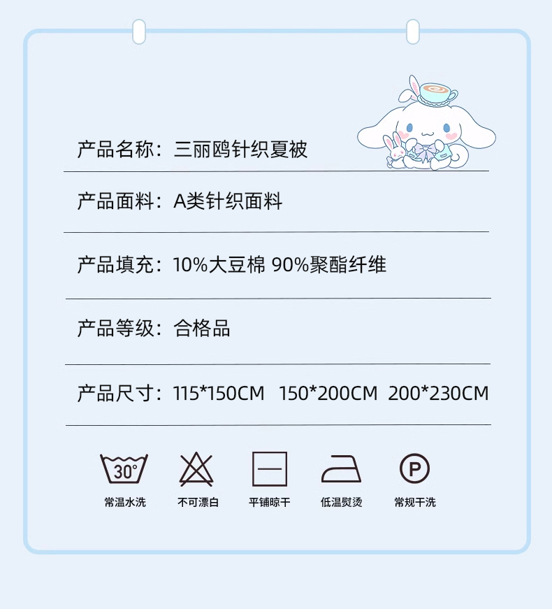 商品名称:天瑜家纺 2024新款三丽鸥针织夏被 库洛米