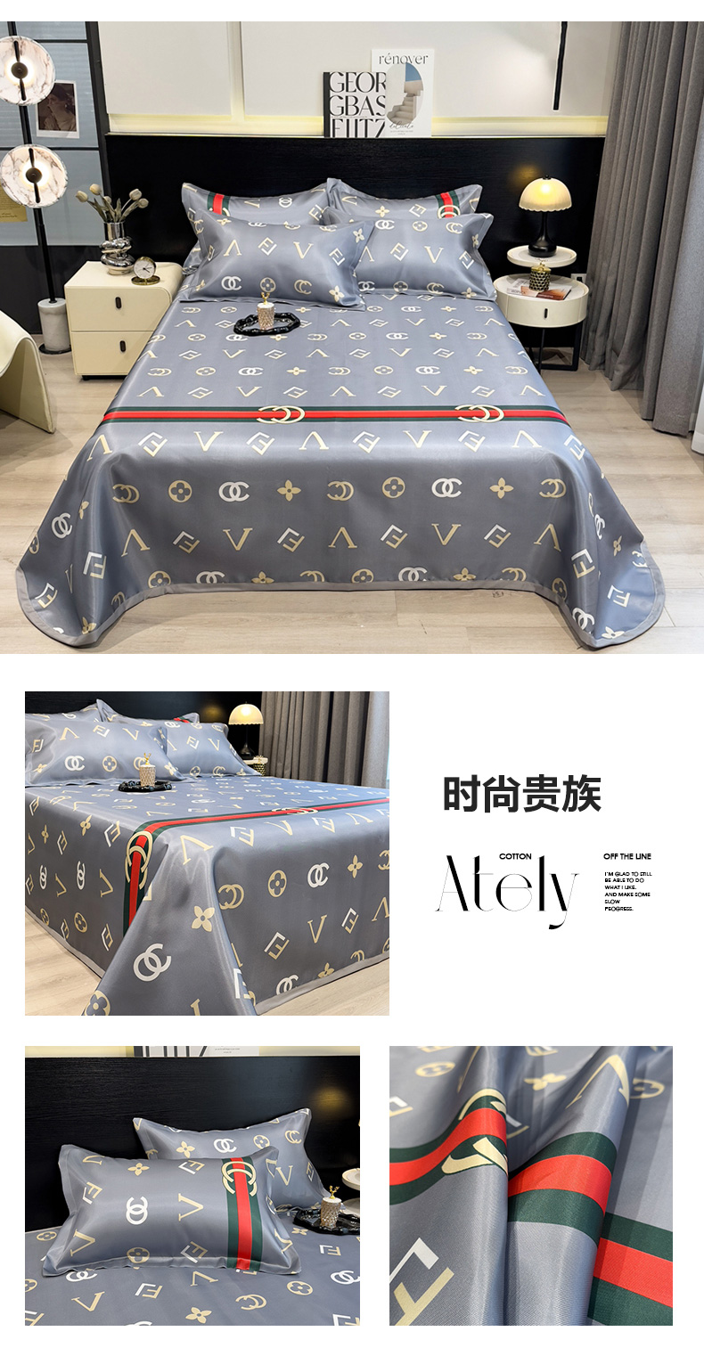 商品名称:柏薇 2024新款冰丝床单款凉席三件套 时尚贵族