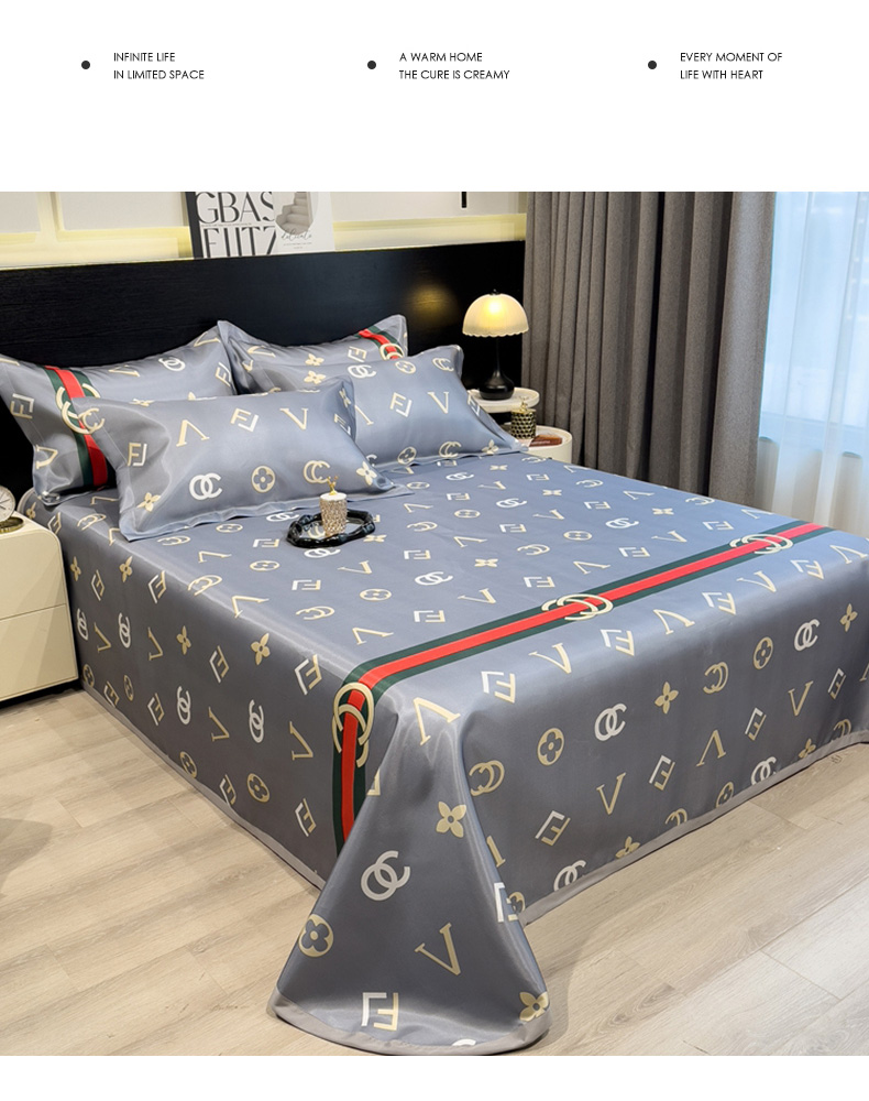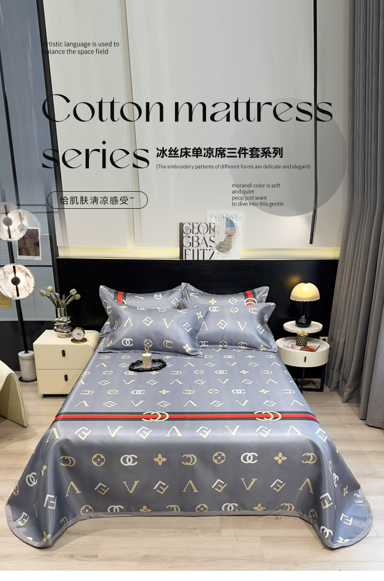 柏薇 2024新款冰丝床单款凉席三件套 时尚贵族