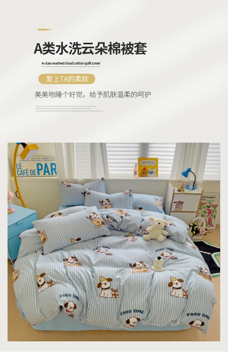 商品名称:(总)慕晨 2024新款A类母婴级水洗云朵棉单被套床上用品卡通儿童宿舍