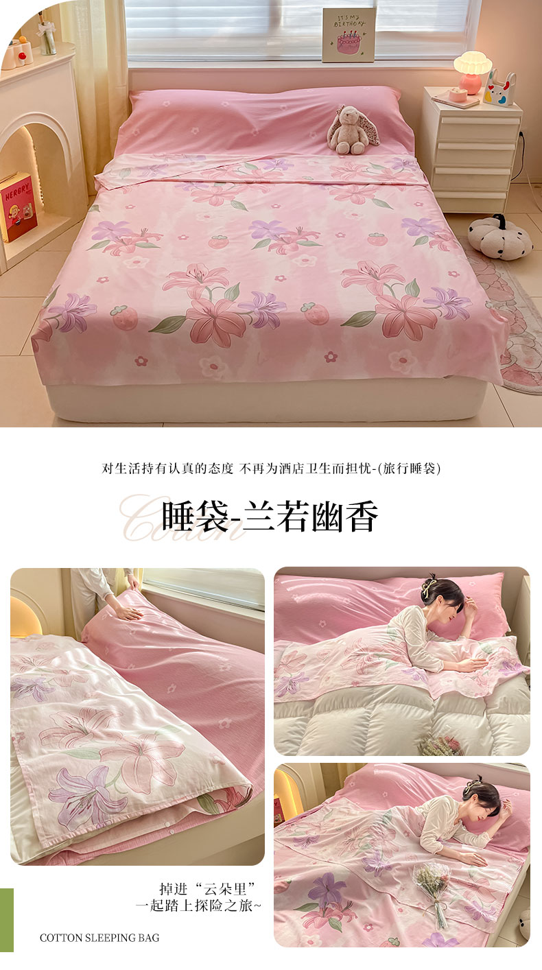 绵庭家纺 2024新款全棉印花隔脏睡袋 兰若幽香