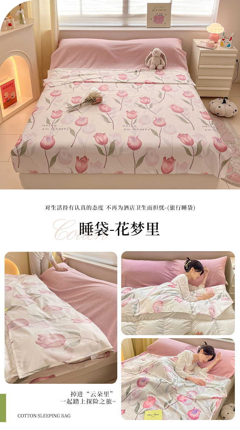 绵庭家纺 2024新款全棉印花隔脏睡袋 花梦里