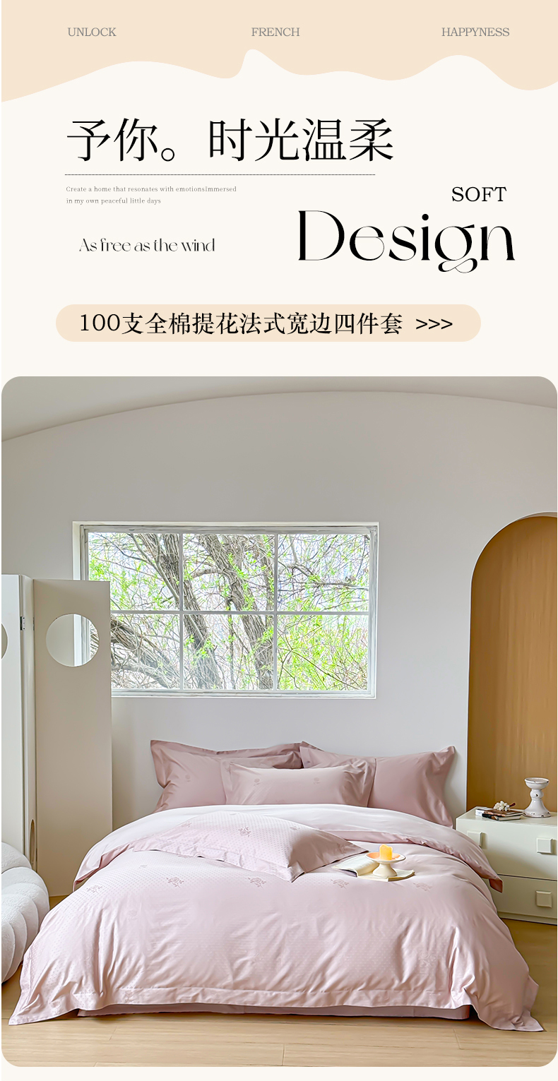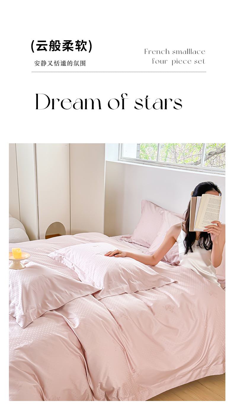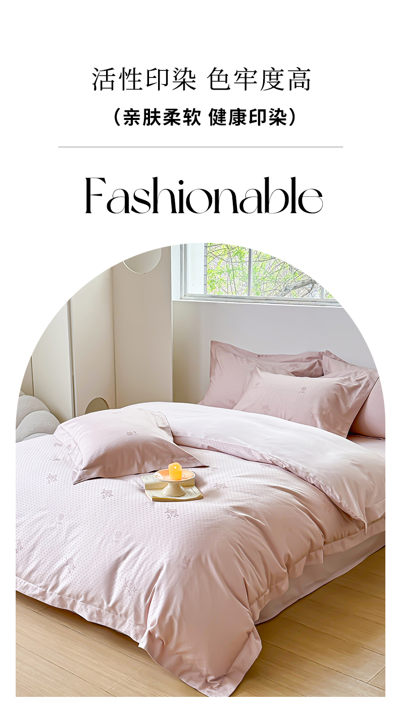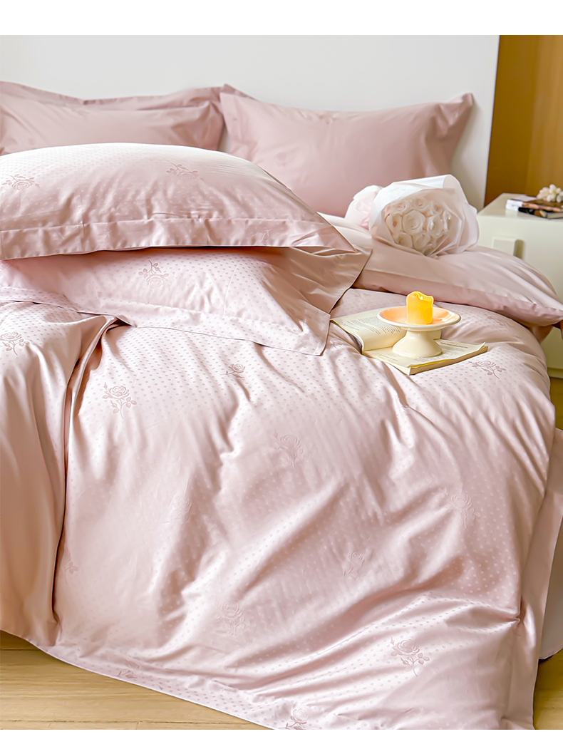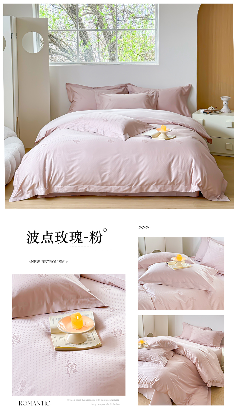 宜代光年 2024新款100支全棉提花系列 波点玫瑰-粉
