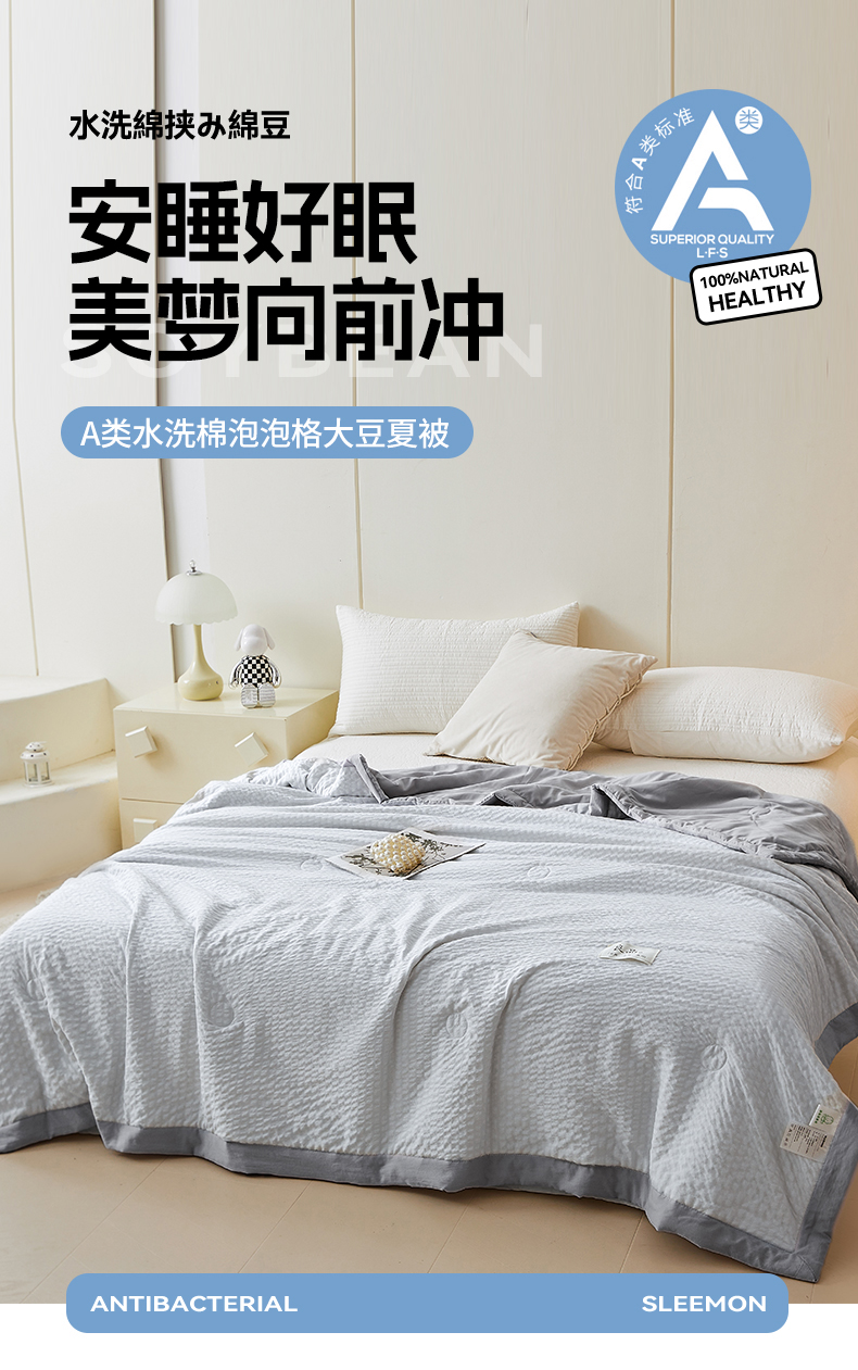 (总)换种生活 2024新款泡泡棉无染款夏被,粉灰色,蓝灰色,奶昔白,水绿色