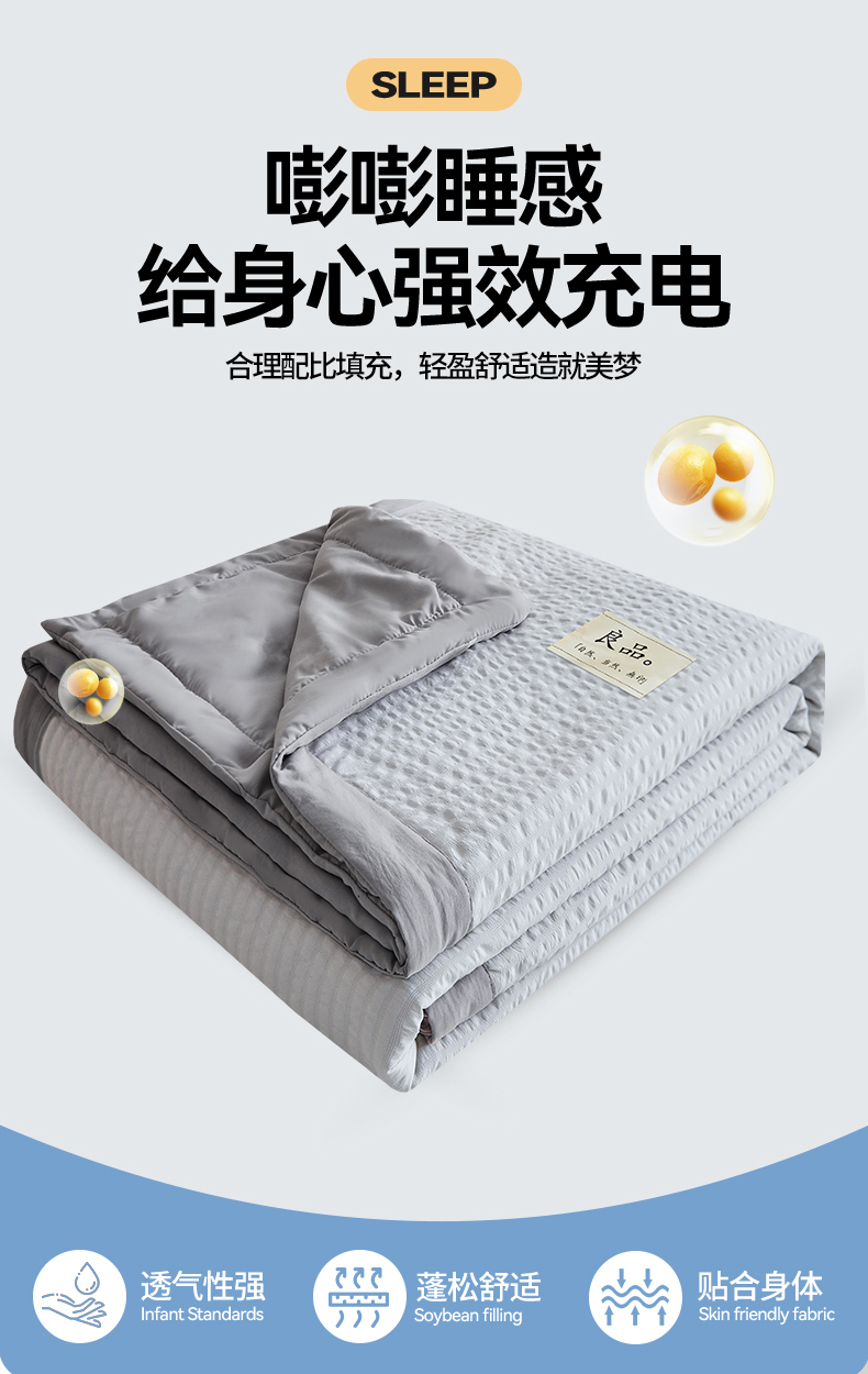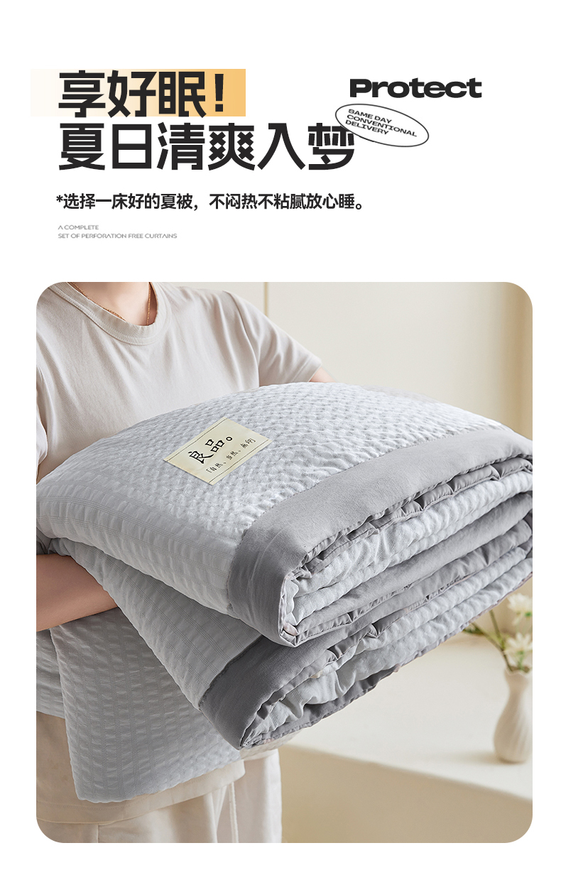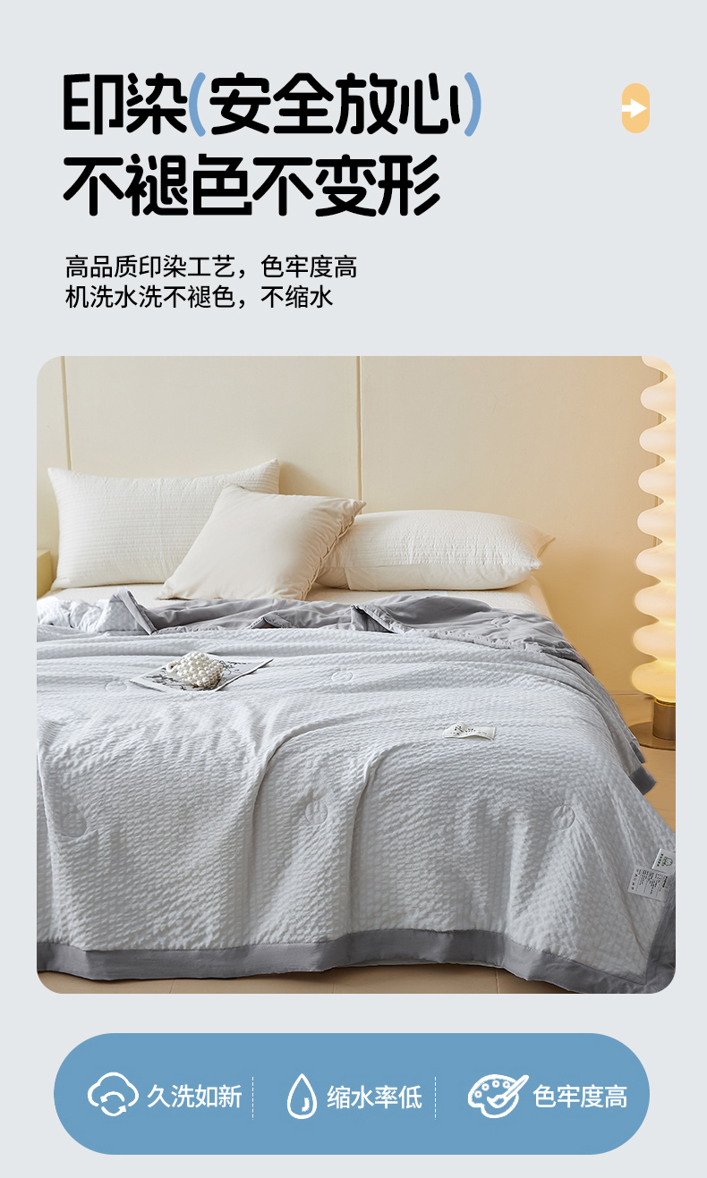 (总)换种生活 2024新款良品款泡泡棉夏被,天蓝,清新粉,米白,绅士灰