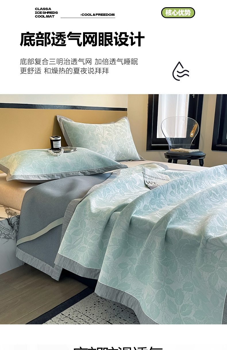 倾慕 2024新款提花凉感凉席 床席款情意浓-绿