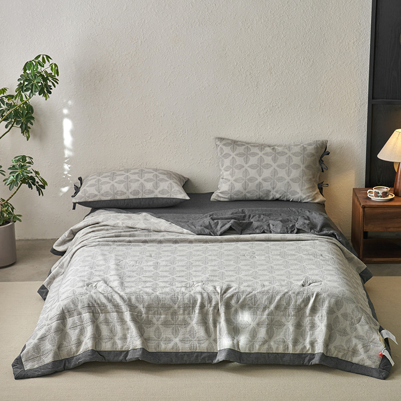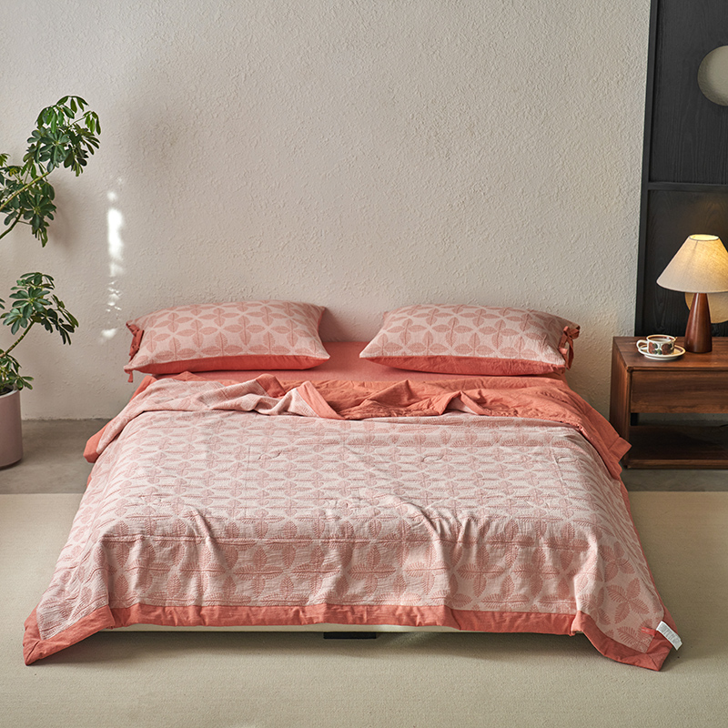 (总)安莱生活 2024新款双层纱色织提花四叶草夏被及夏被四件套系列