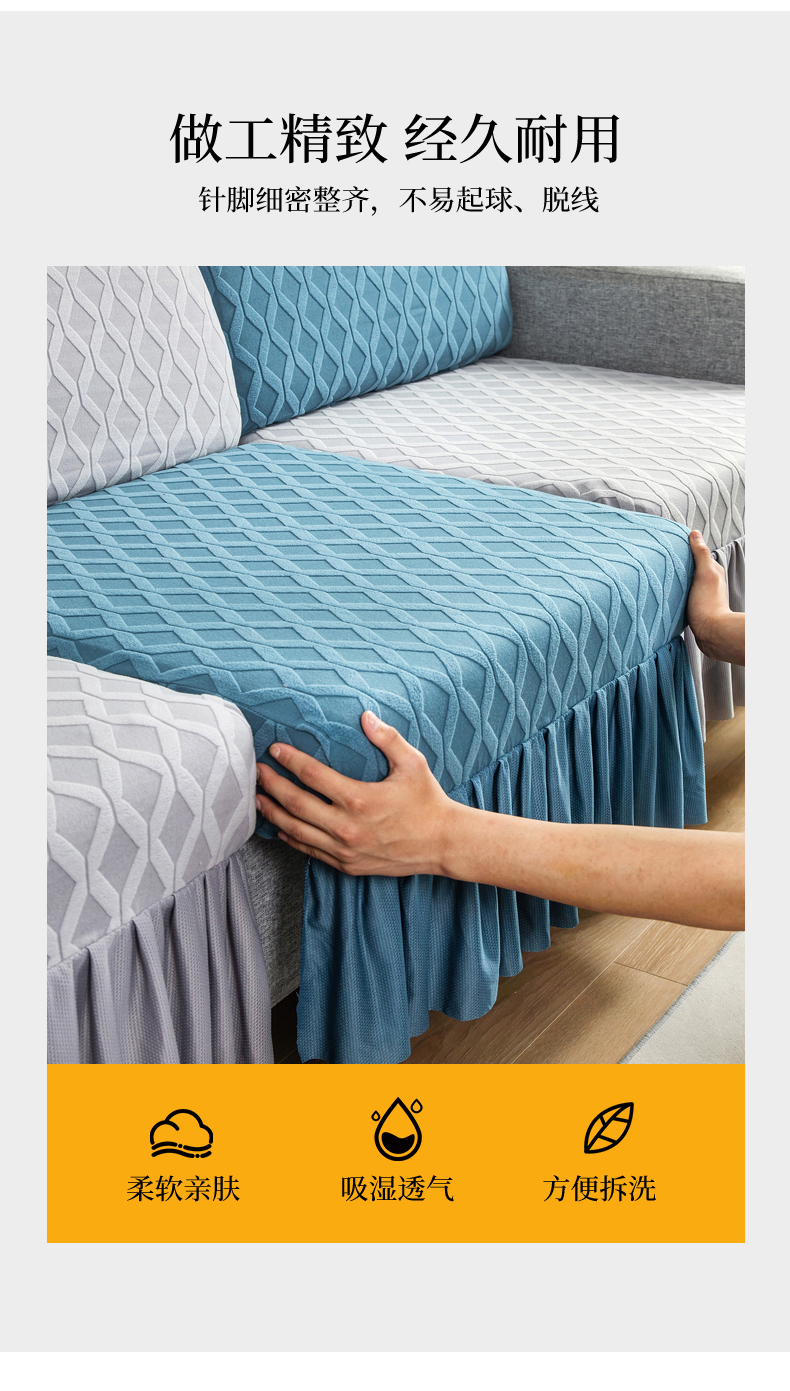 当前位置: 91家纺网 > 商品网购 > 居家布艺 > 坐垫/椅垫/沙发垫 > 沙发垫 > 千彤沙发垫 2024新款裙边款拉花绒菱形格系列沙发笠 水蓝银灰组合