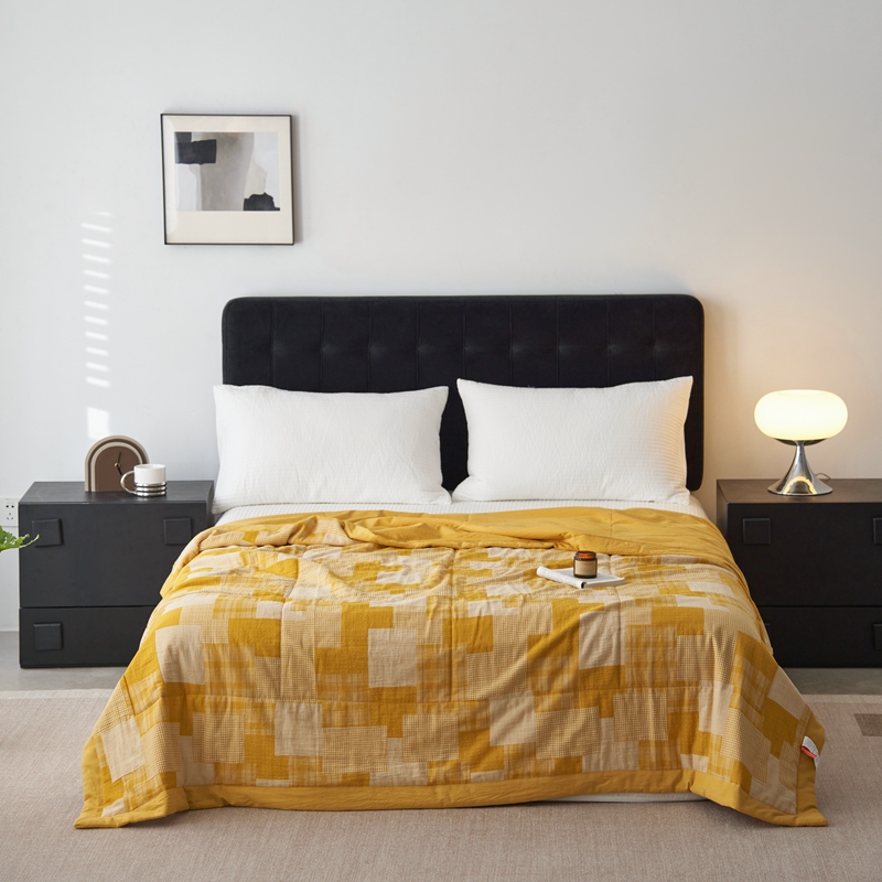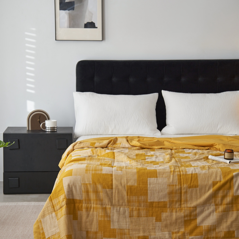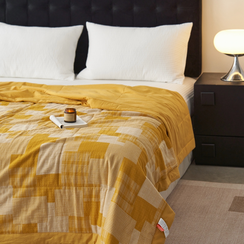 商品名称:安莱生活 2024新款双层纱拼布田园单夏被系列 拼布田园-姜黄