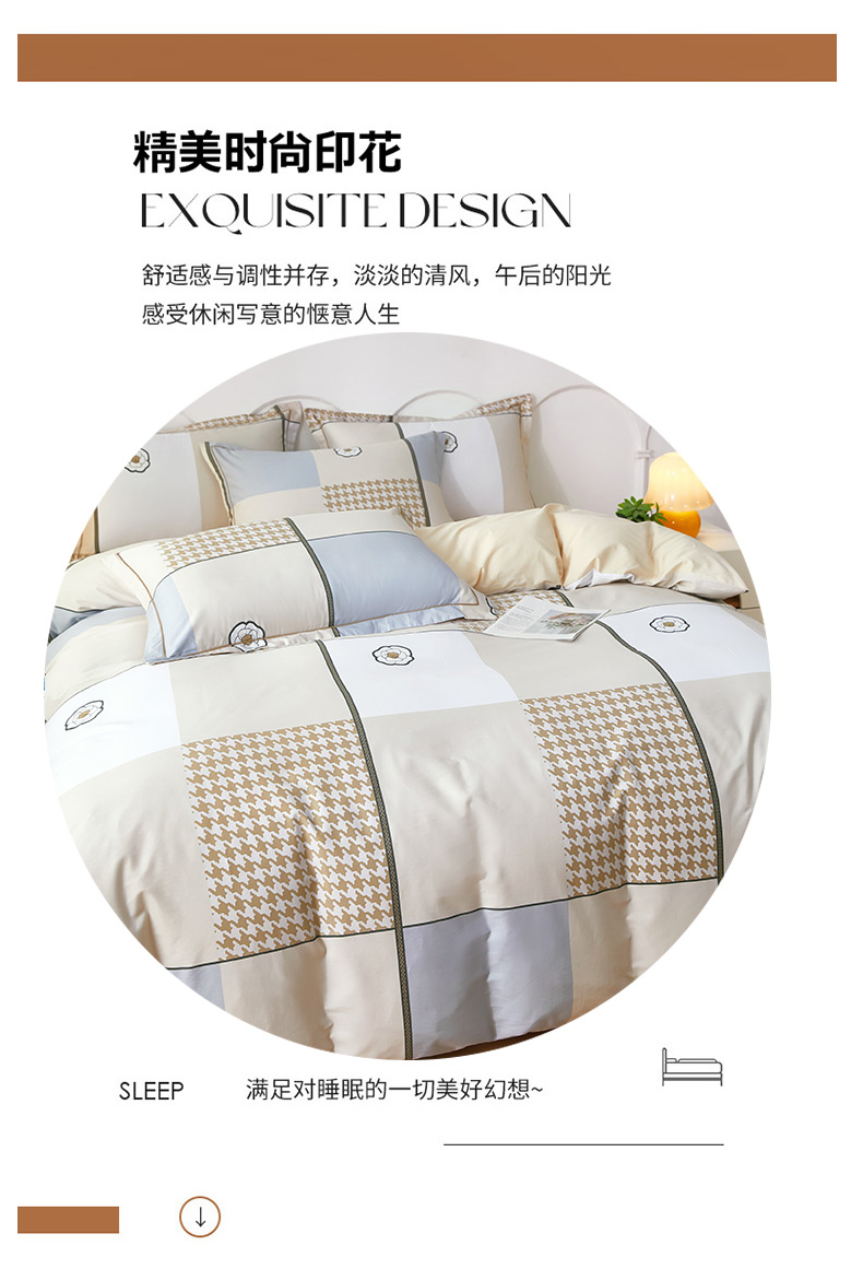 商品名称:雲归梦 2024新款全棉活性13372印花四件套 清筱 咖