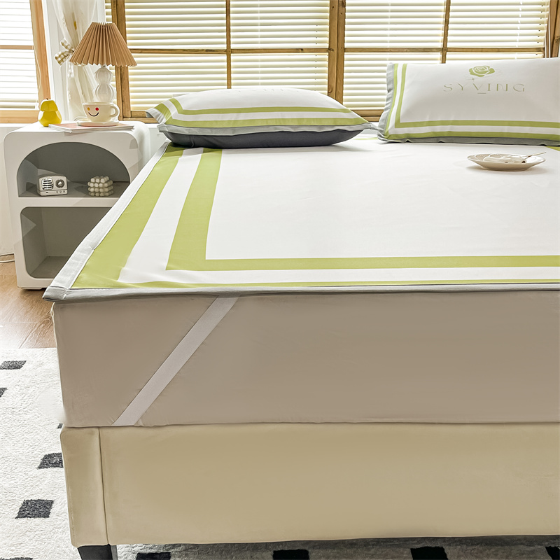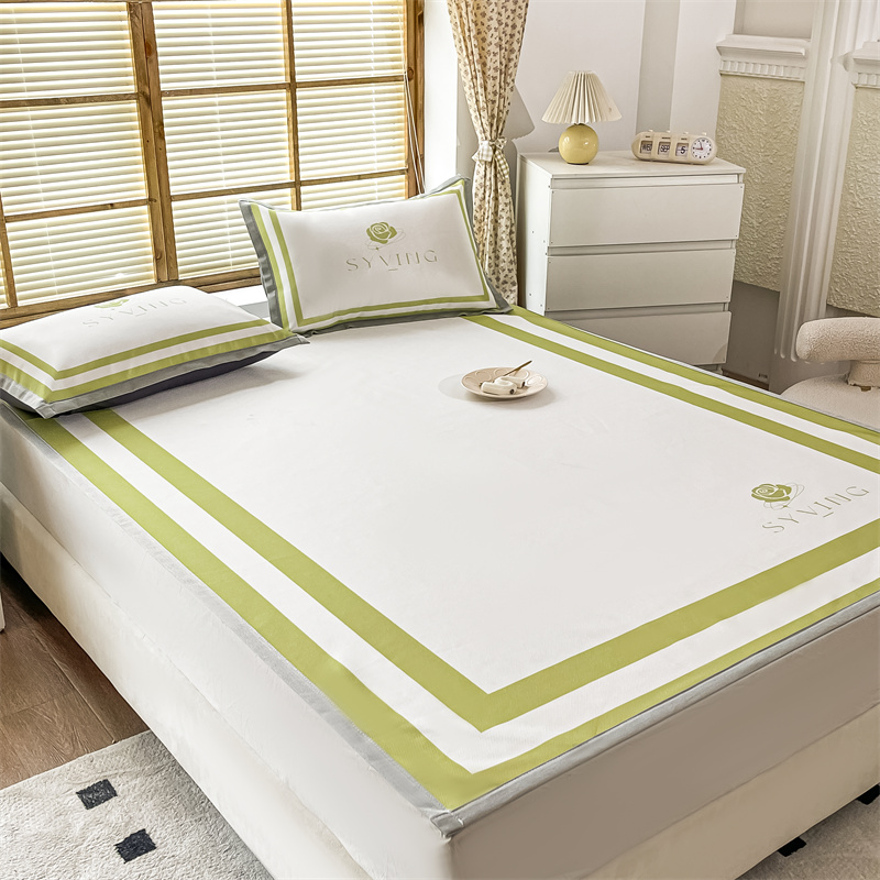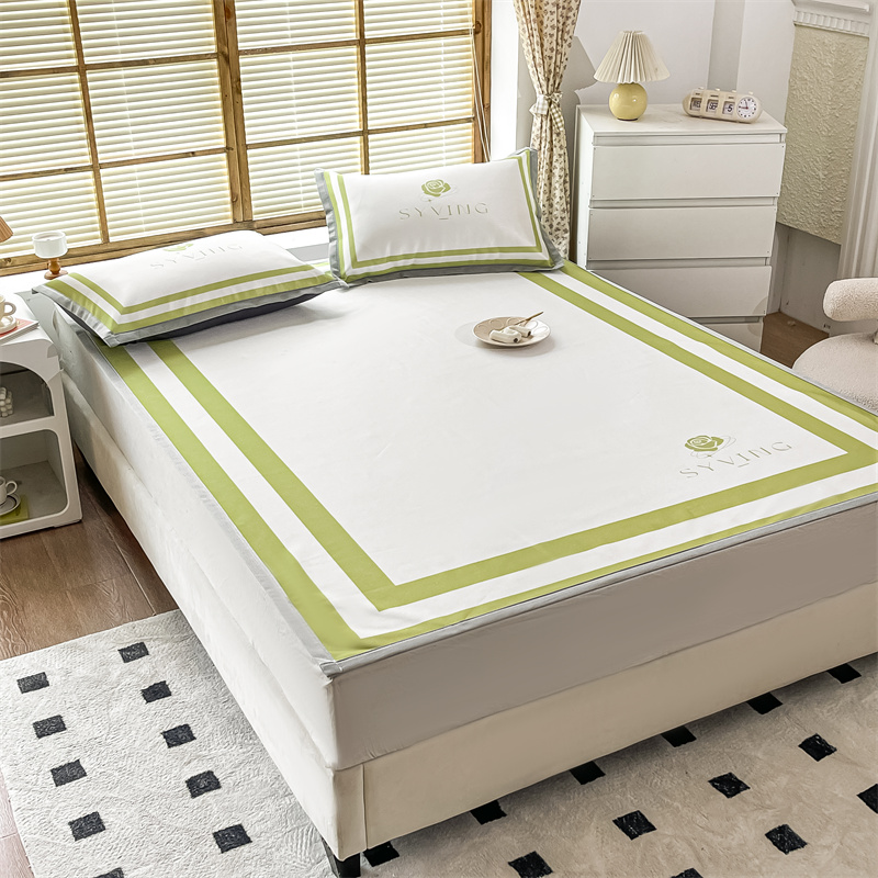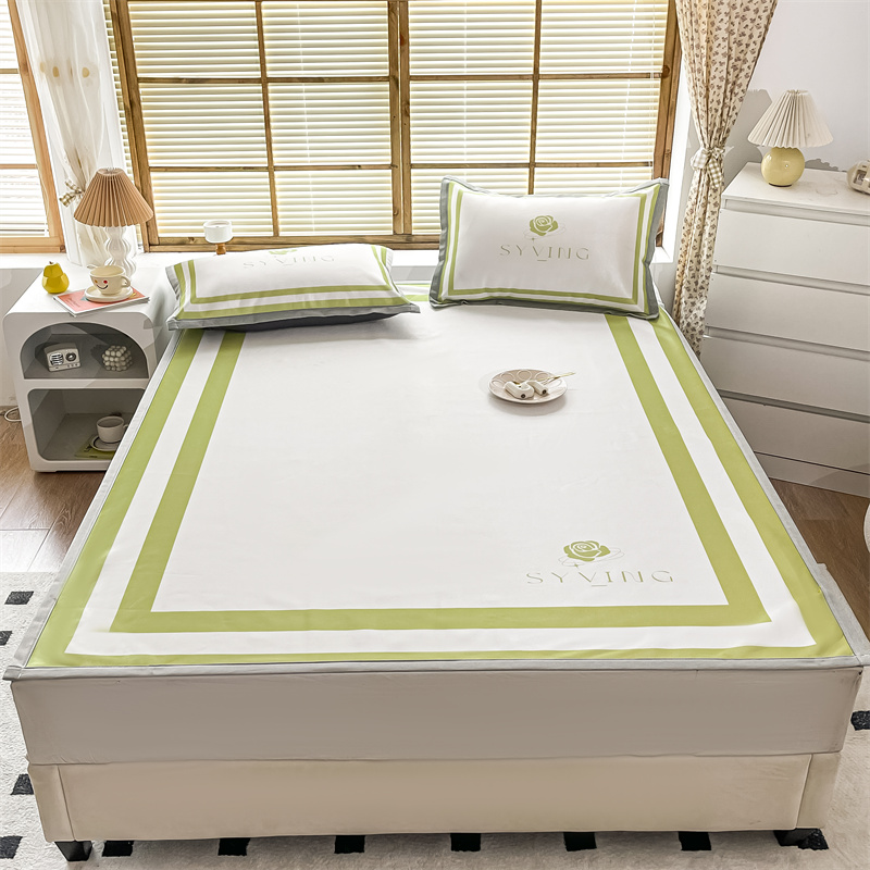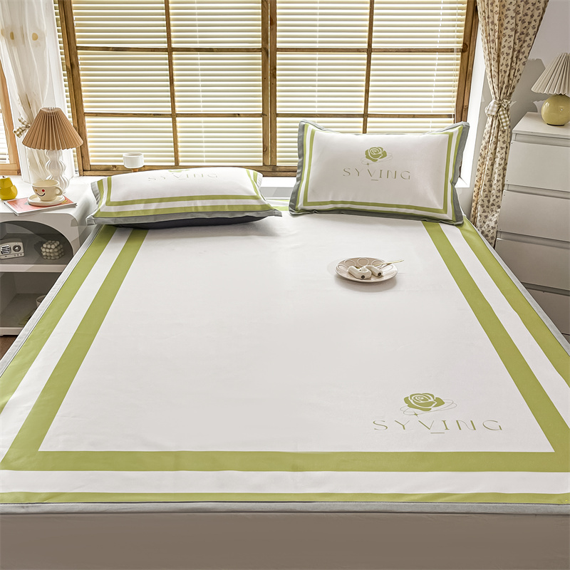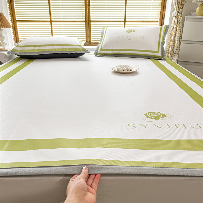 • 91家纺网 家纺一手货源 找家纺 栩裕纺织 2025款数码印花1200D碳光牛奶冰丝凉席 春晓-绿