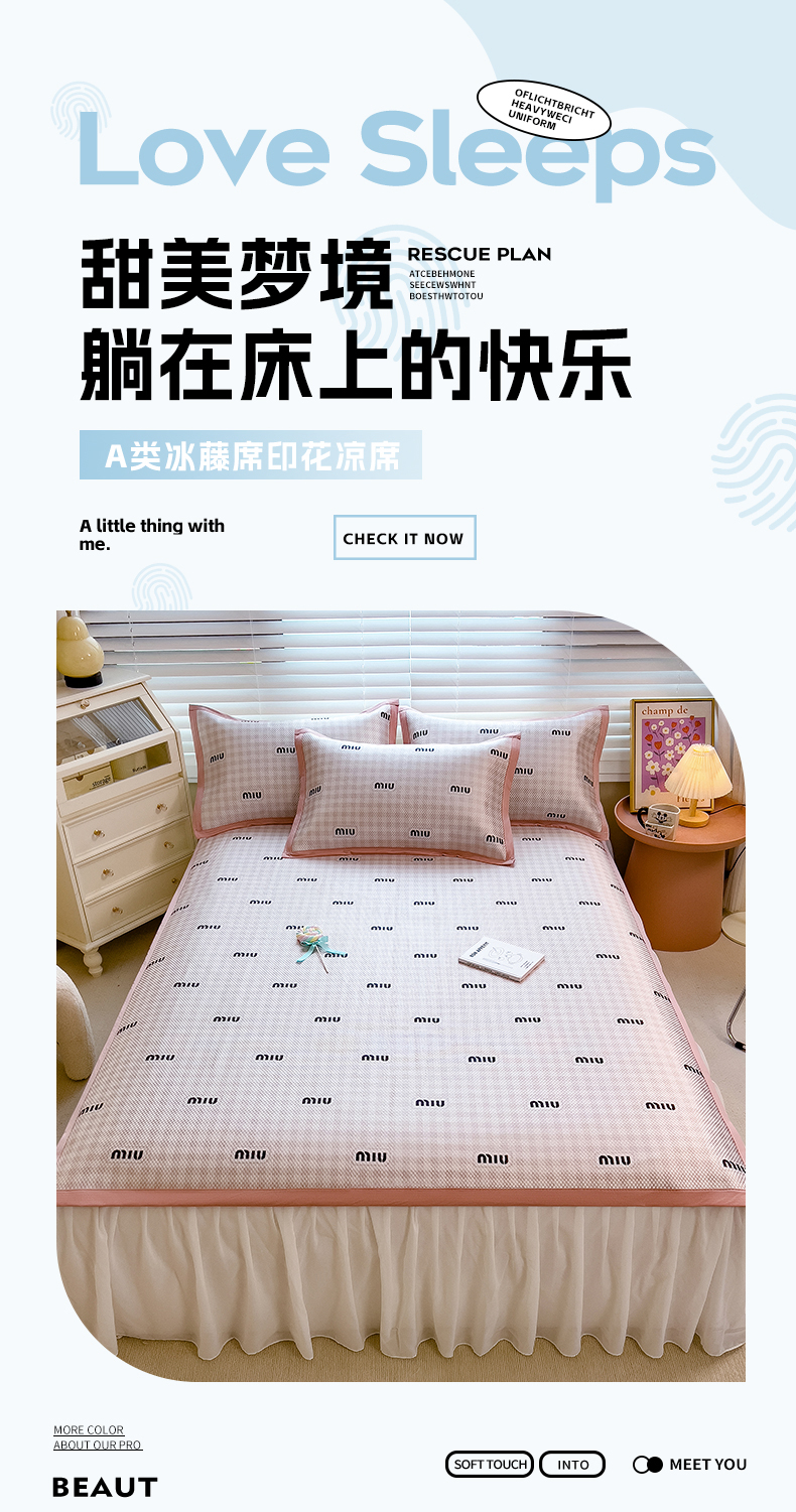 布卢姆床垫 新款A类数码印花冰藤席夏凉席--床席款 粉miu