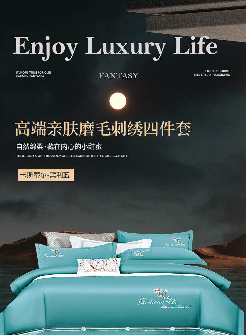 商品名称:浩情国际 2026四季款斜纹木棉绣花卡斯蒂尔系列四件套 卡斯蒂尔-宾利蓝