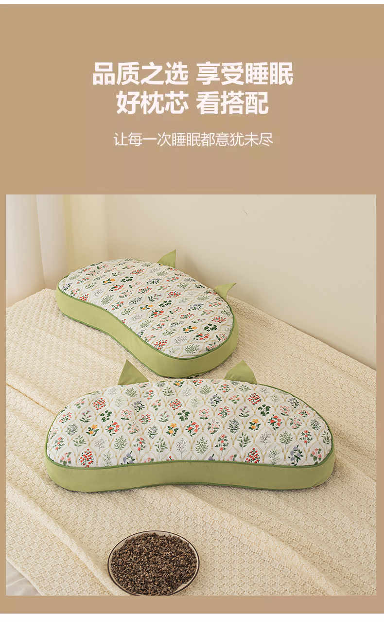 商品名称:(总)贵夫人 2024新款全棉韩式小猫耳-纯荞麦枕枕头枕芯