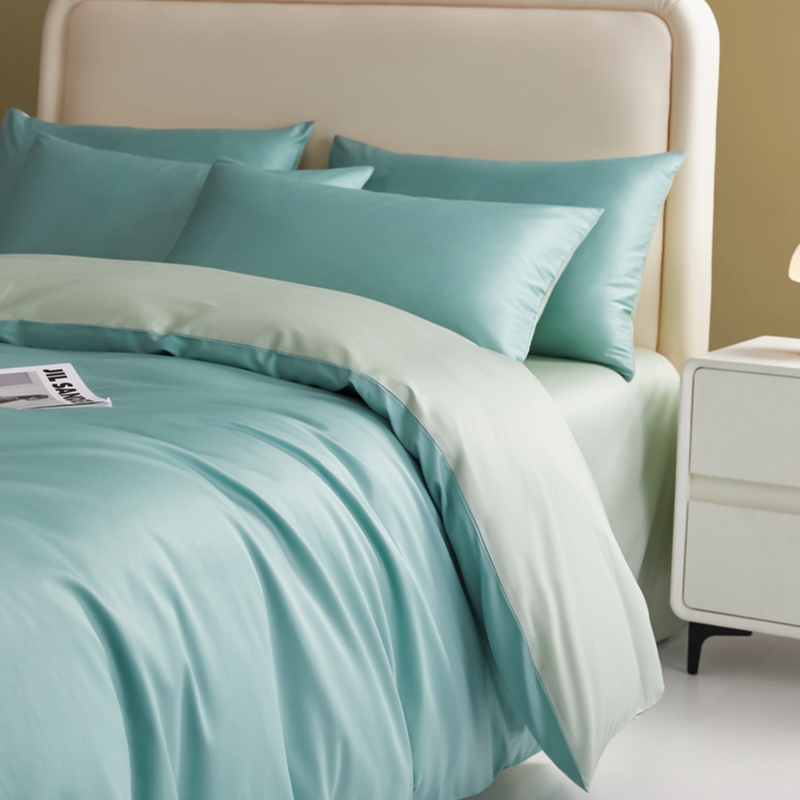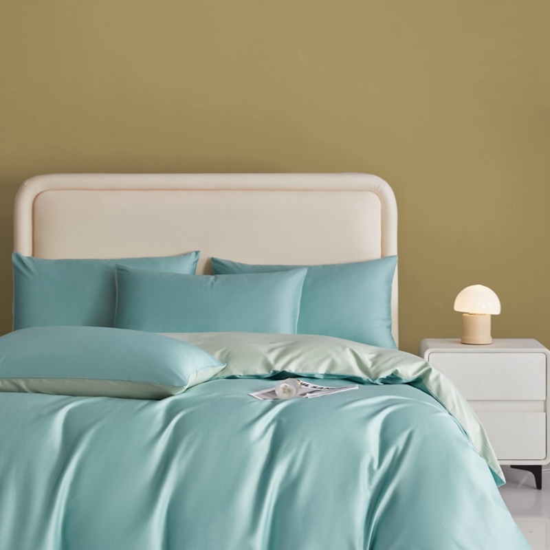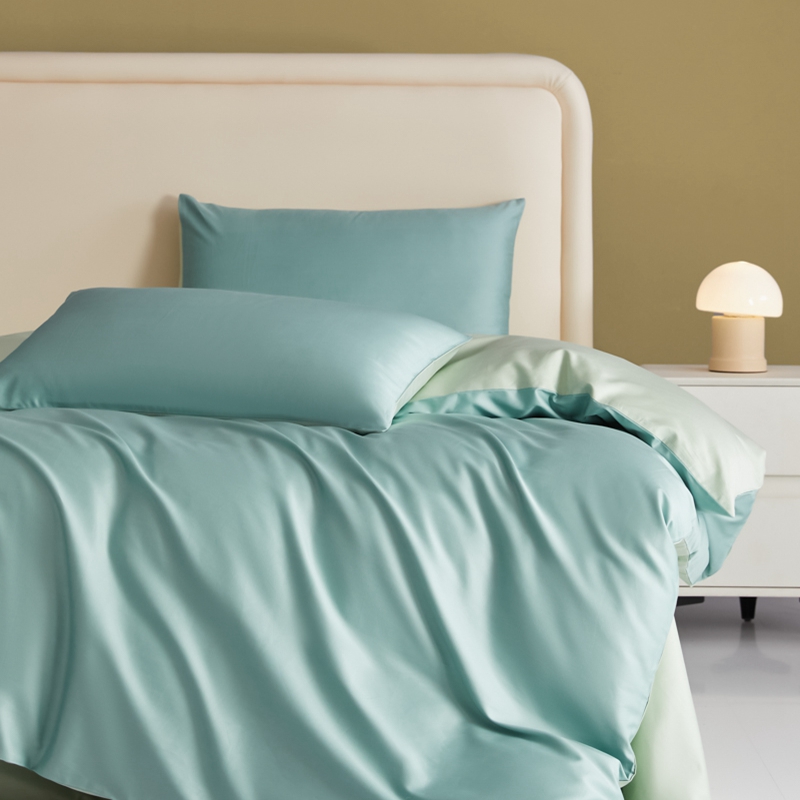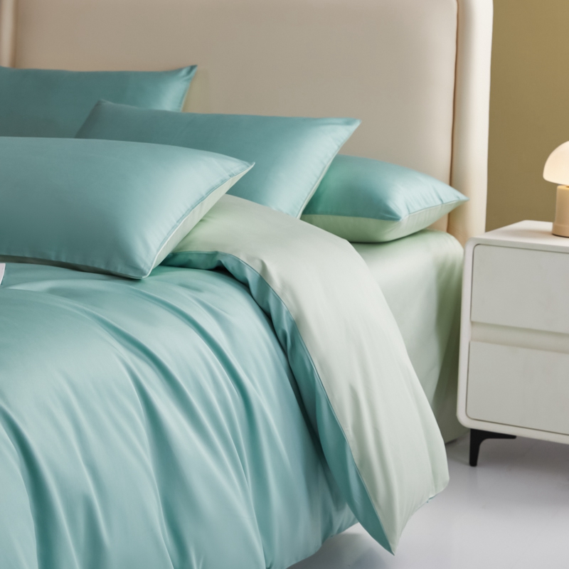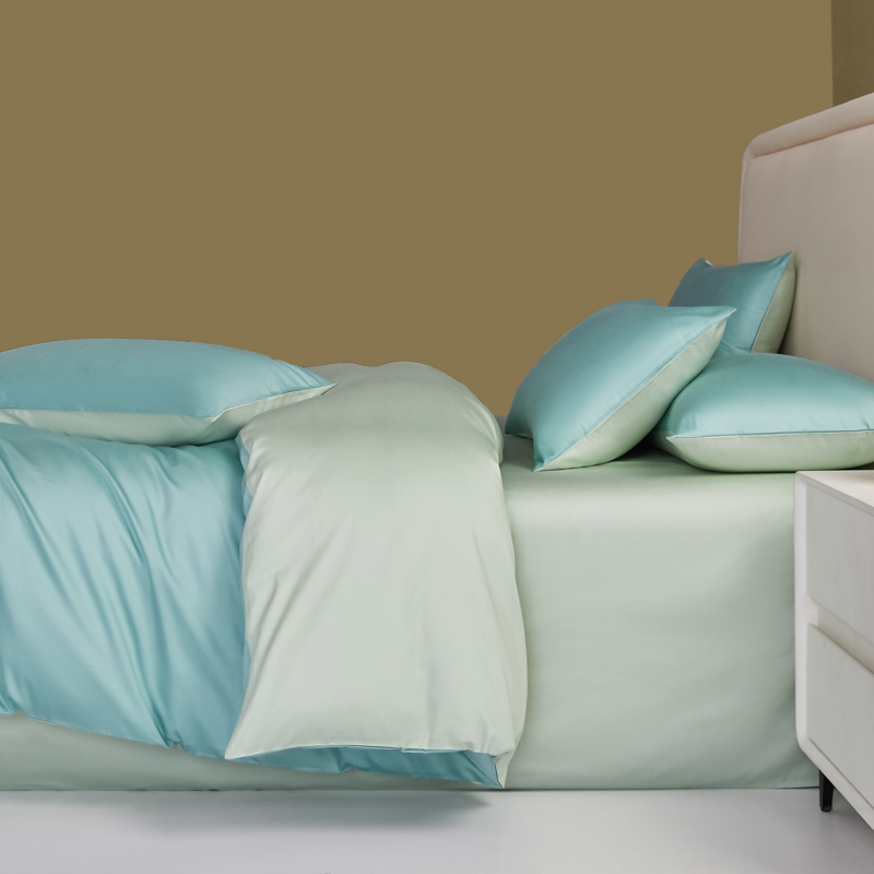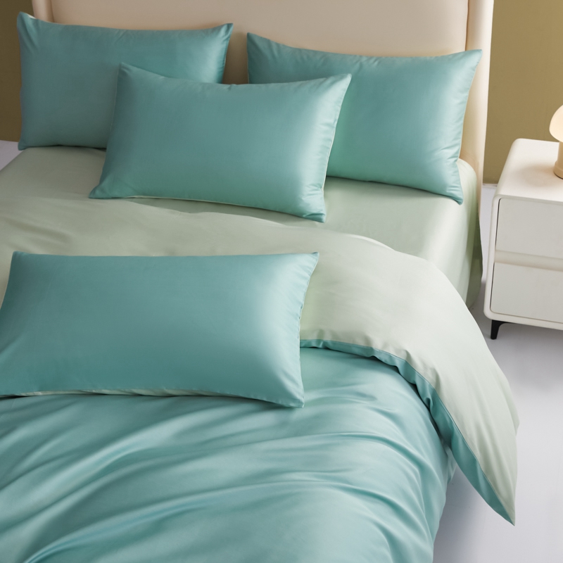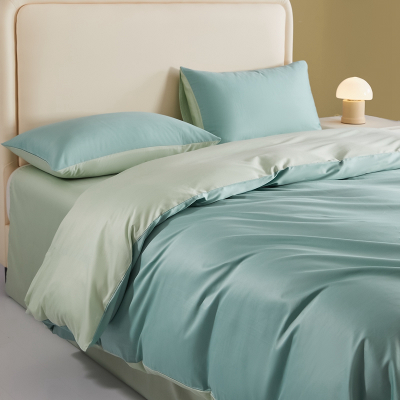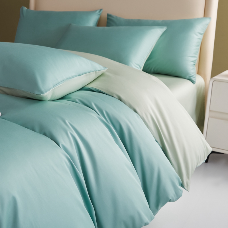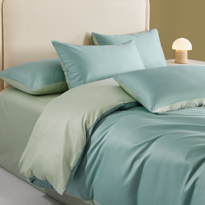 当前位置: 91家纺网 > 商品网购 > 床品套件 > 四件套 > 长绒棉四件套 > 莱阁亿 2025新款60支长绒棉纯色拼色四件套 风铃绿+艾草绿