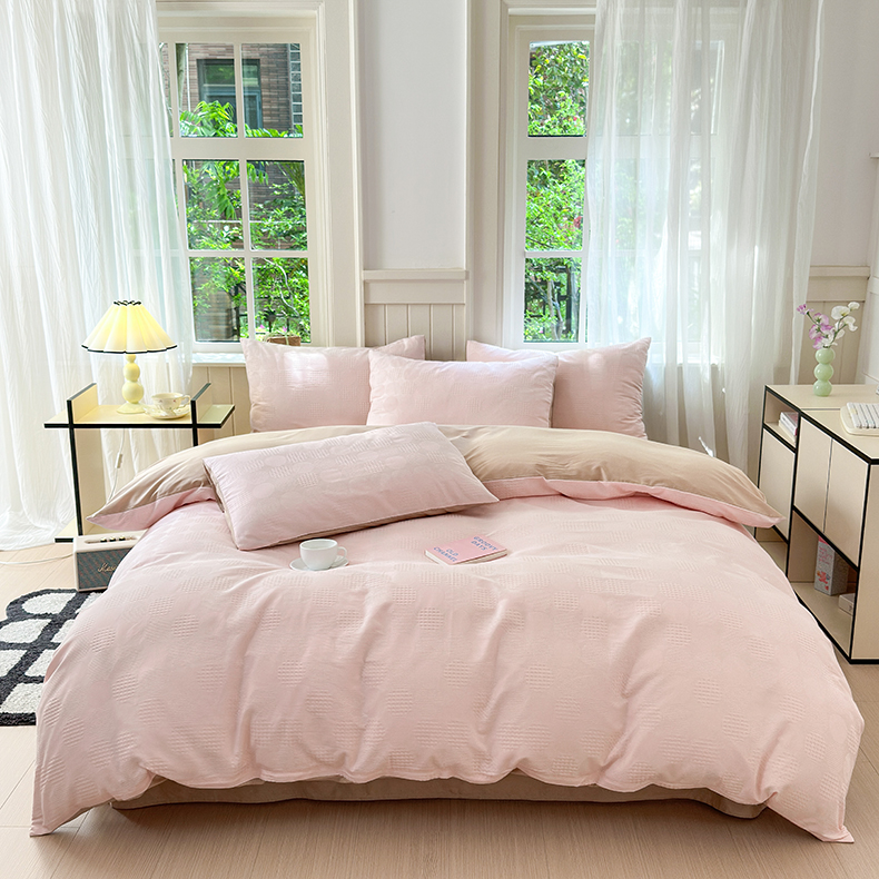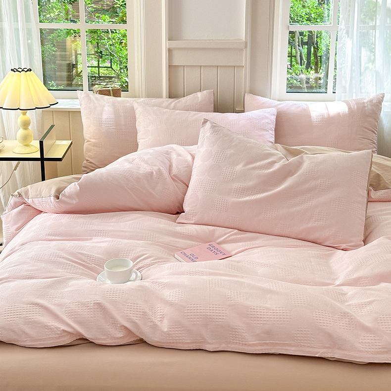 当前位置: 91家纺网 > 商品网购 > 床品套件 > 四件套 > 全棉普通四件套 > 菡宝 2024新款全棉色织小提花四件套 圆圈粉