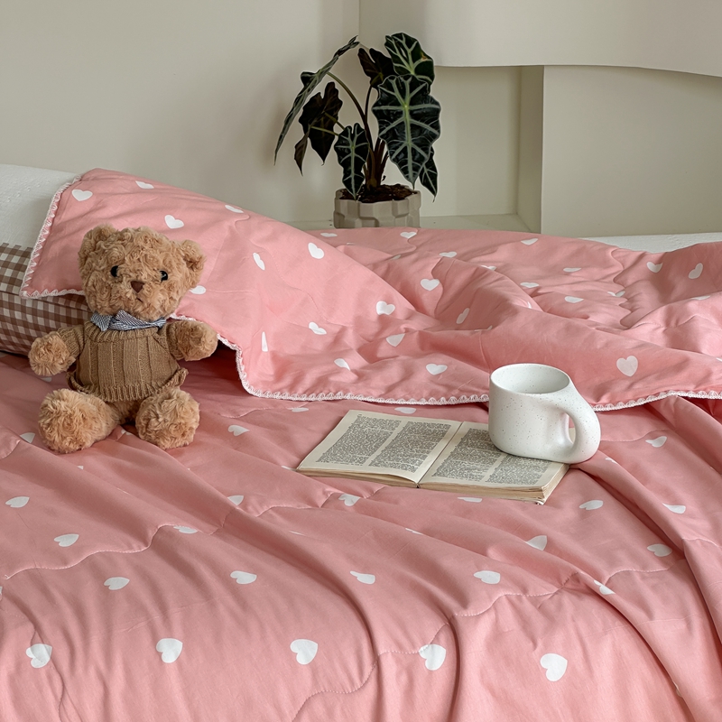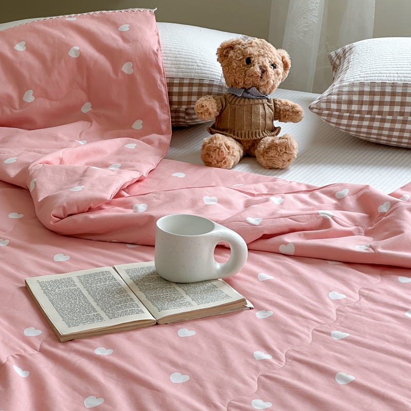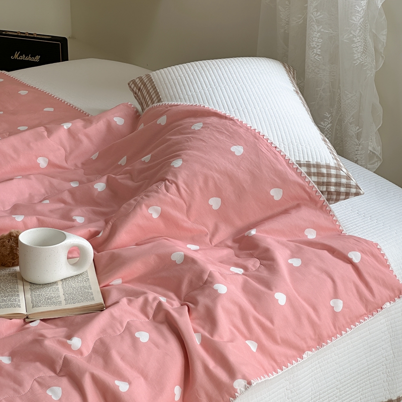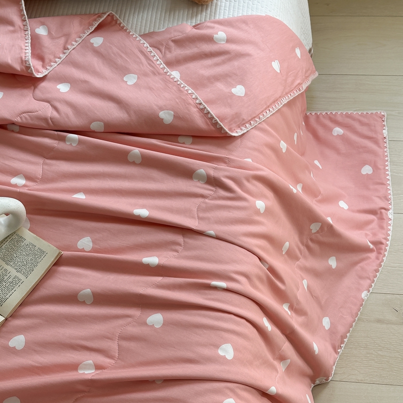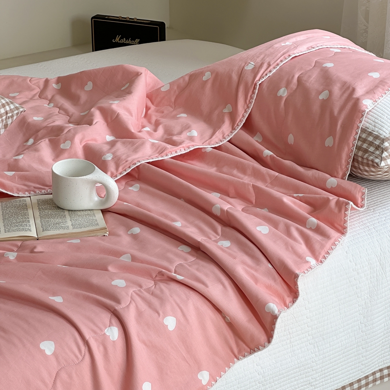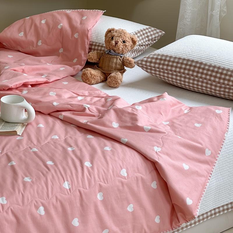 洋铭区 2024新款贝壳边全棉印花夏被 粉色小心心