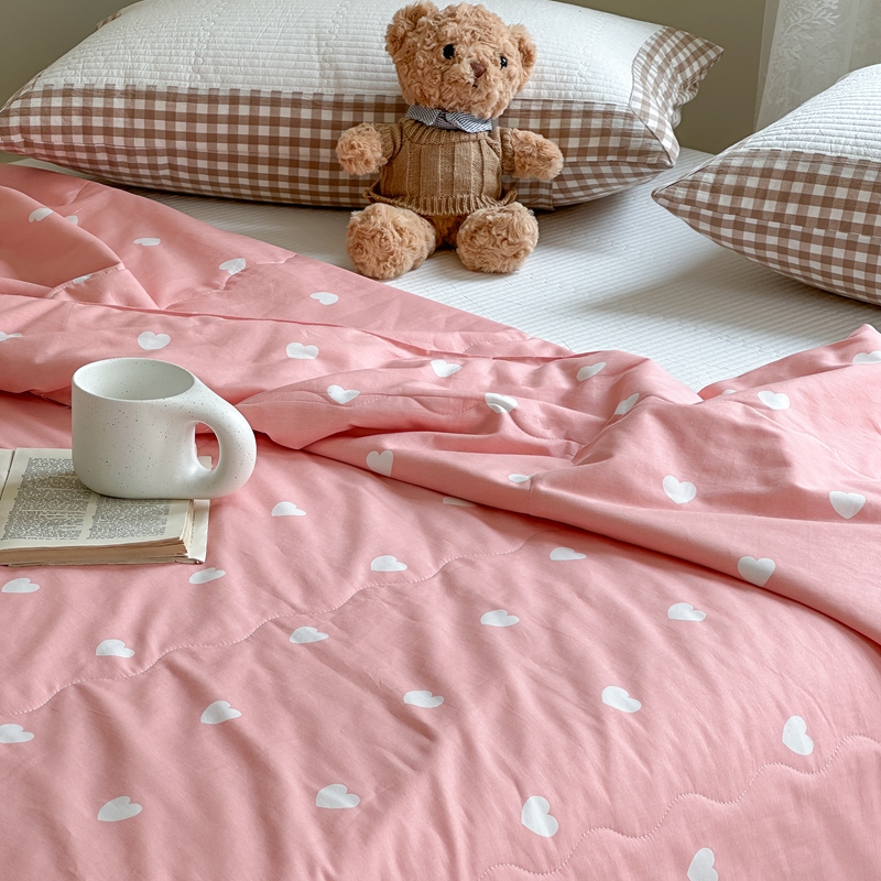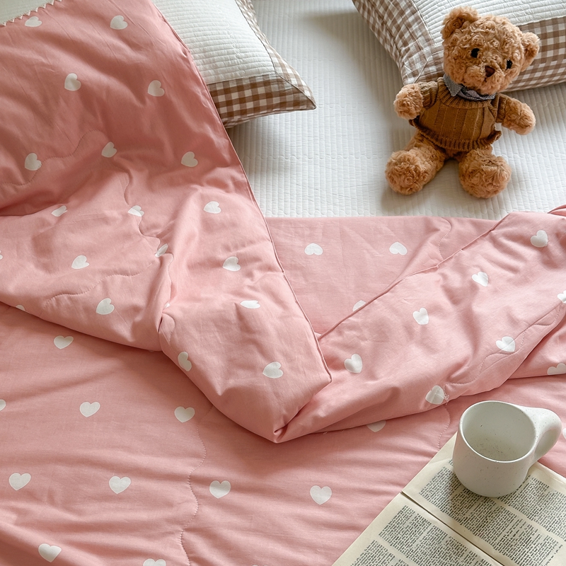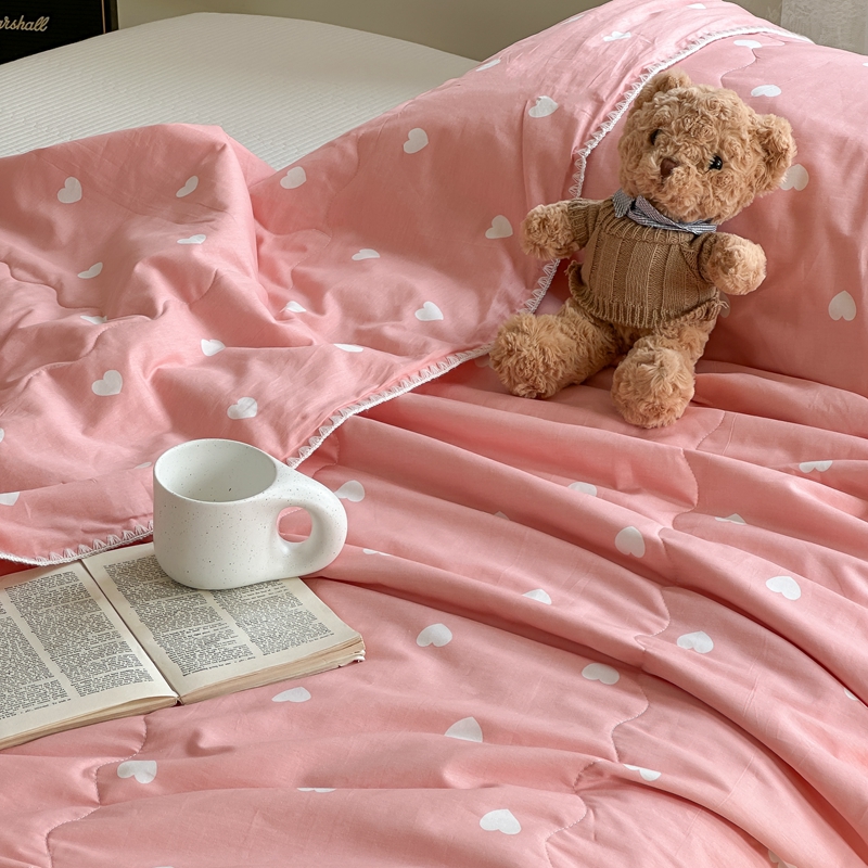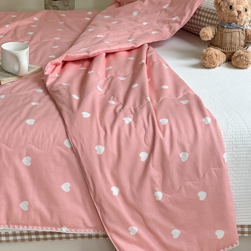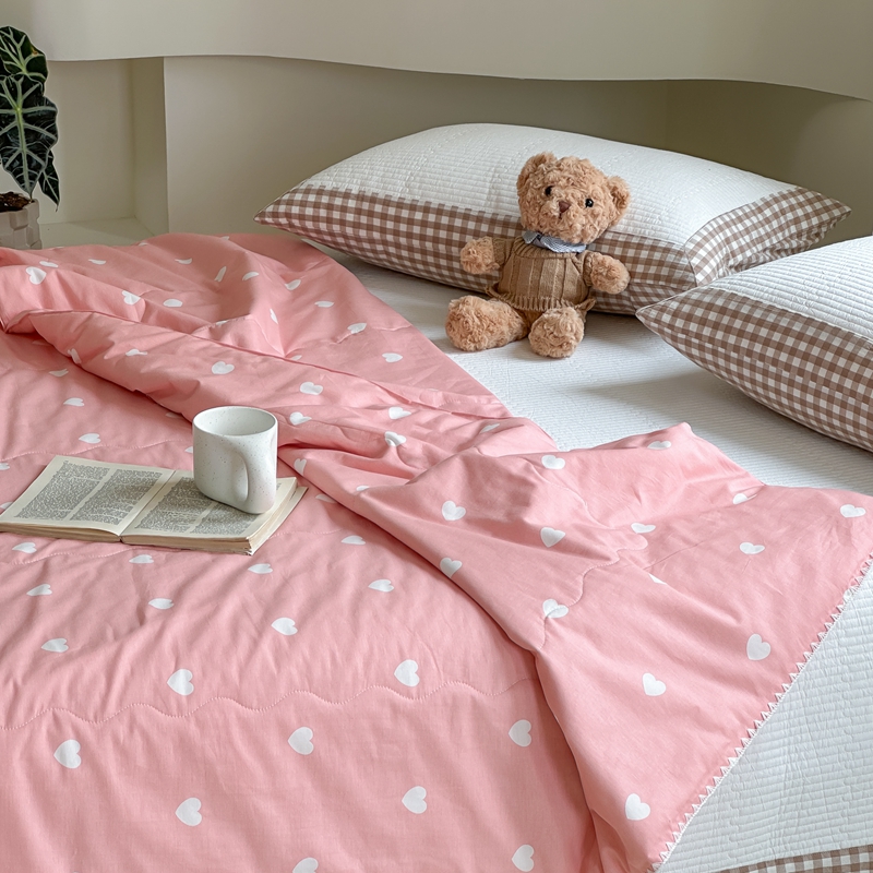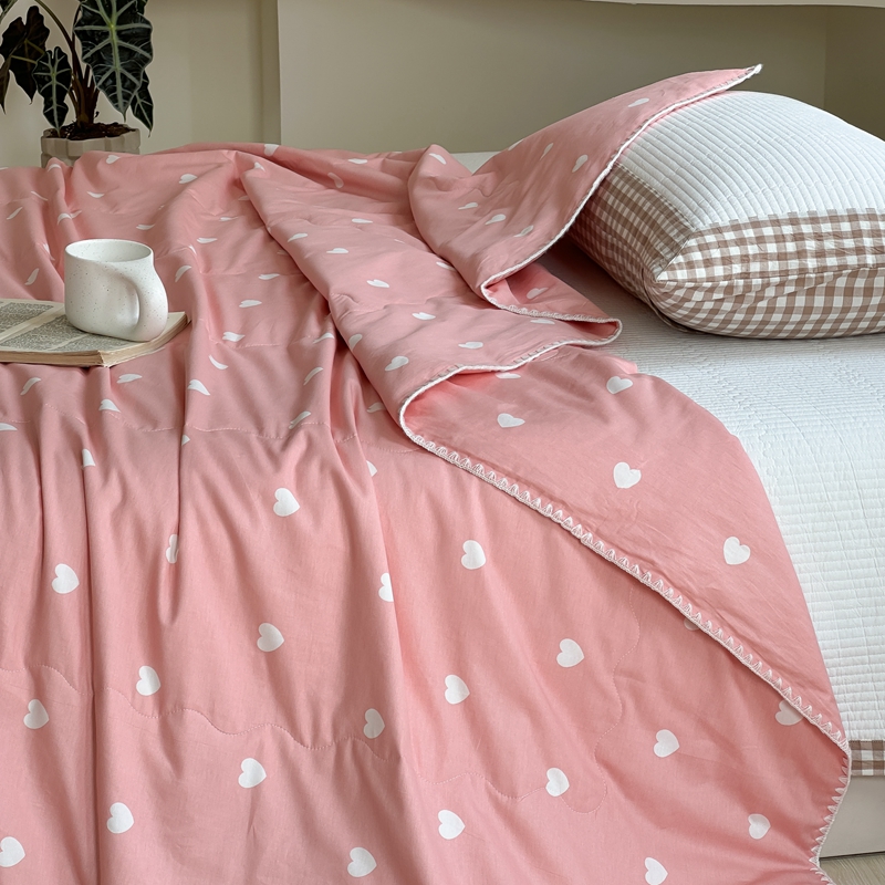 洋铭区 2024新款贝壳边全棉印花夏被 粉色小心心