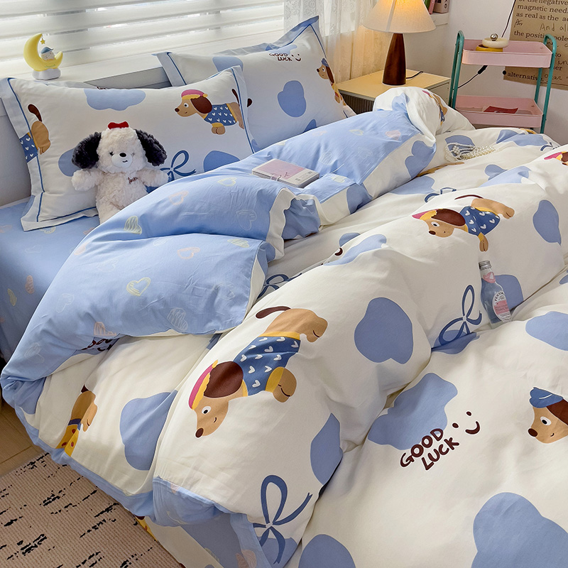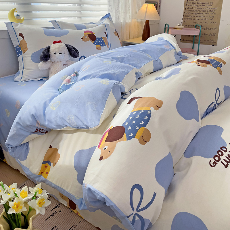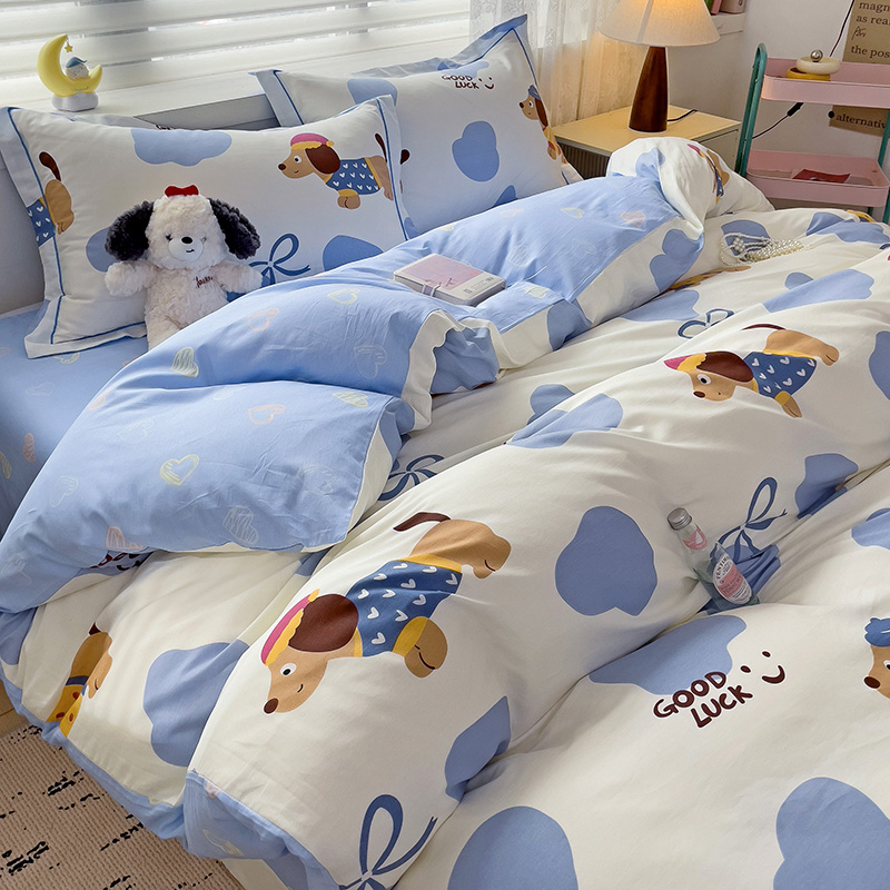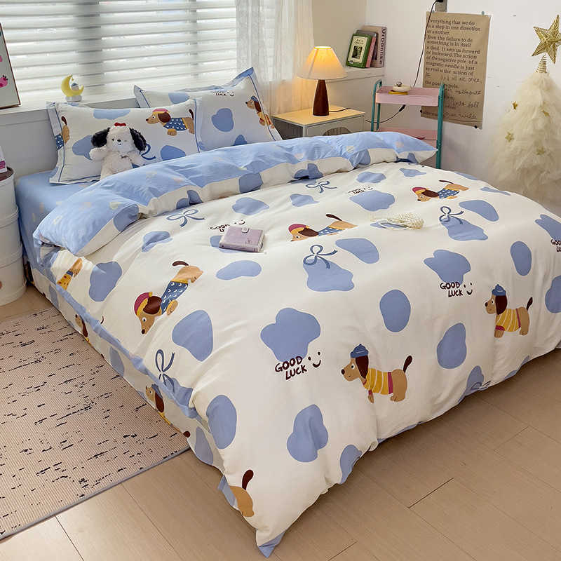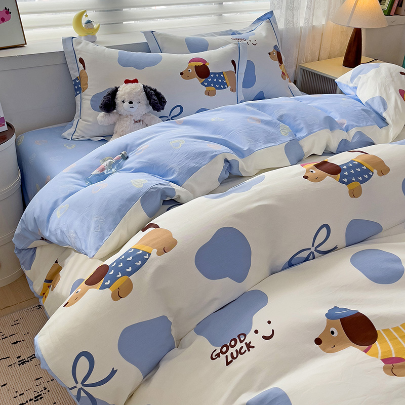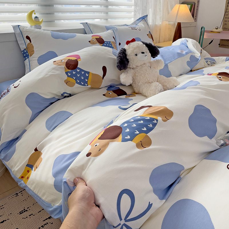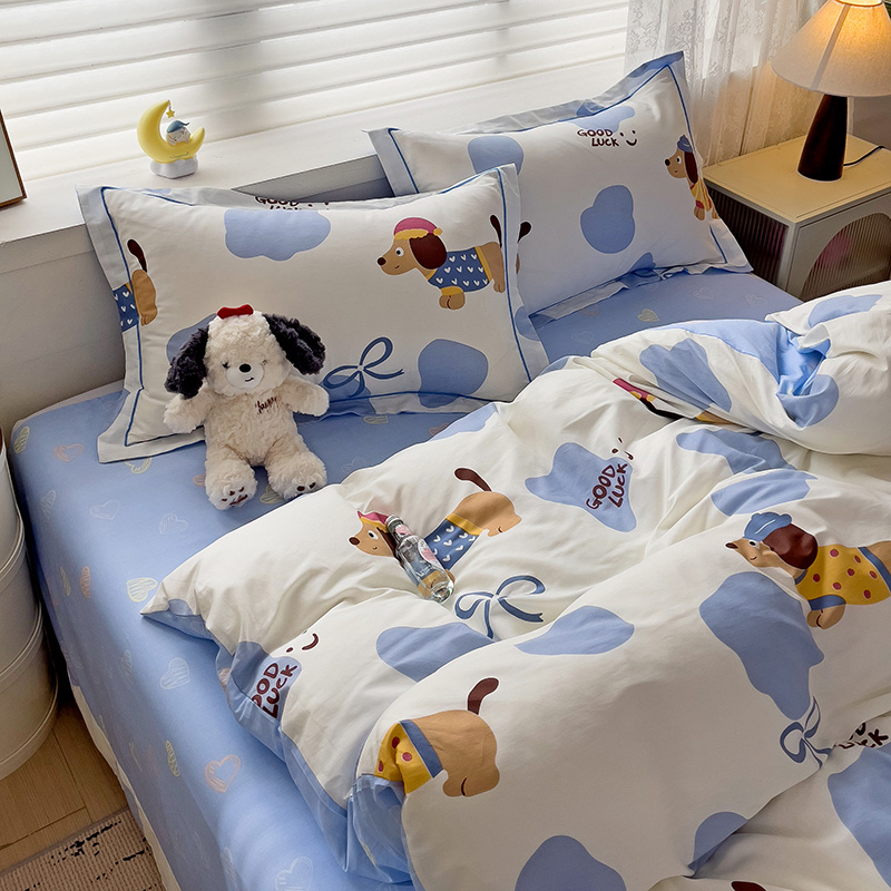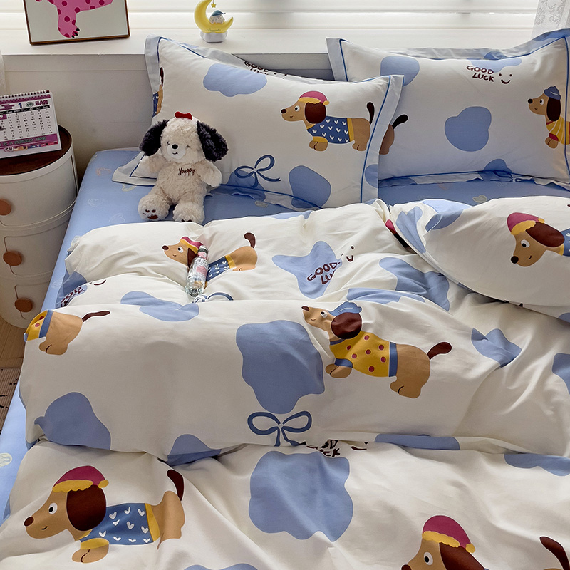 乐童 2024新款直播爆款13070纯棉印花吊边款一字绣四件套-第七波 萌宠出动