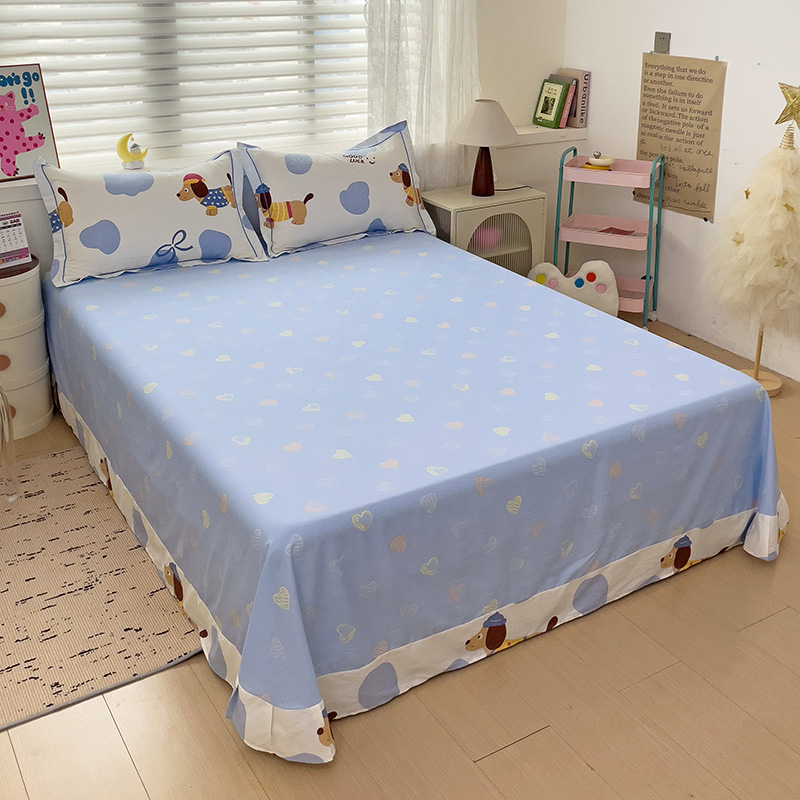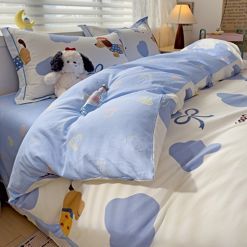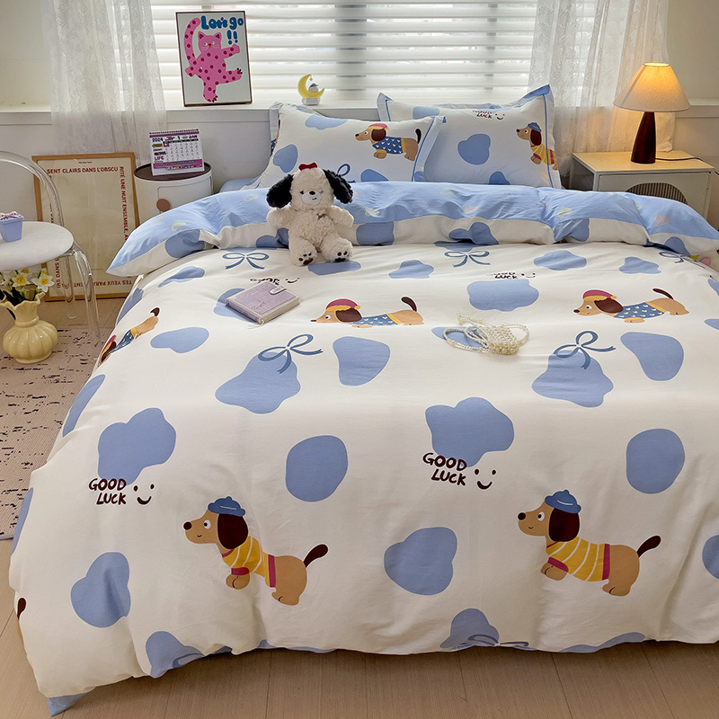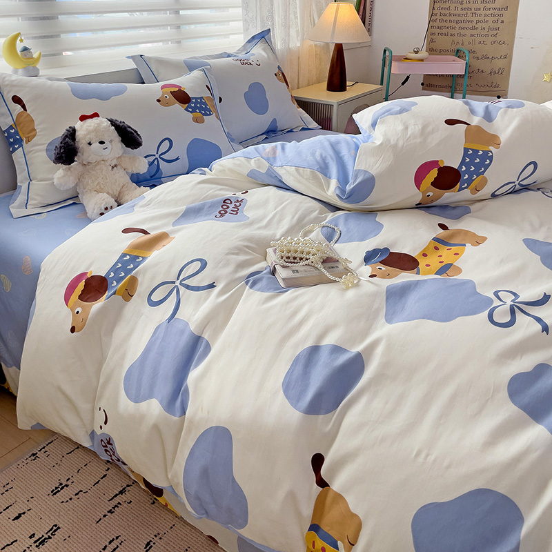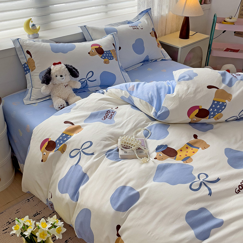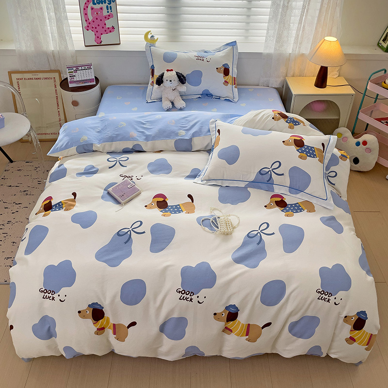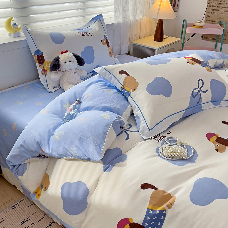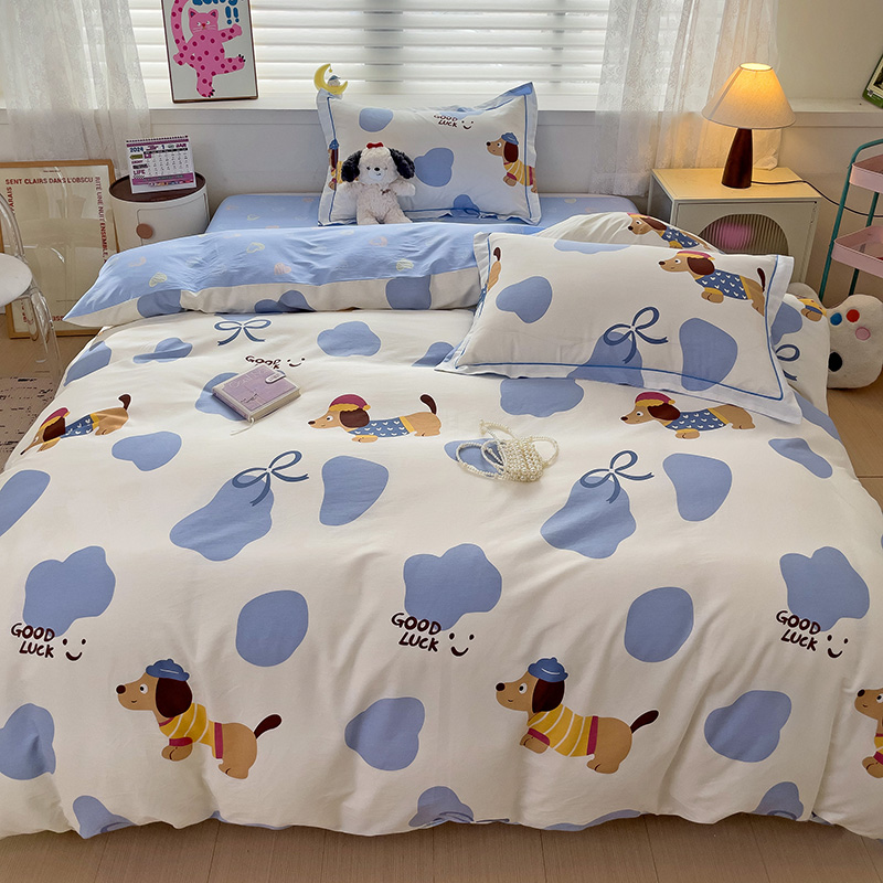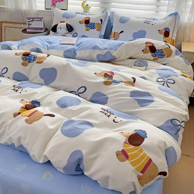 乐童 2024新款直播爆款13070纯棉印花吊边款一字绣四件套-第七波 萌宠出动